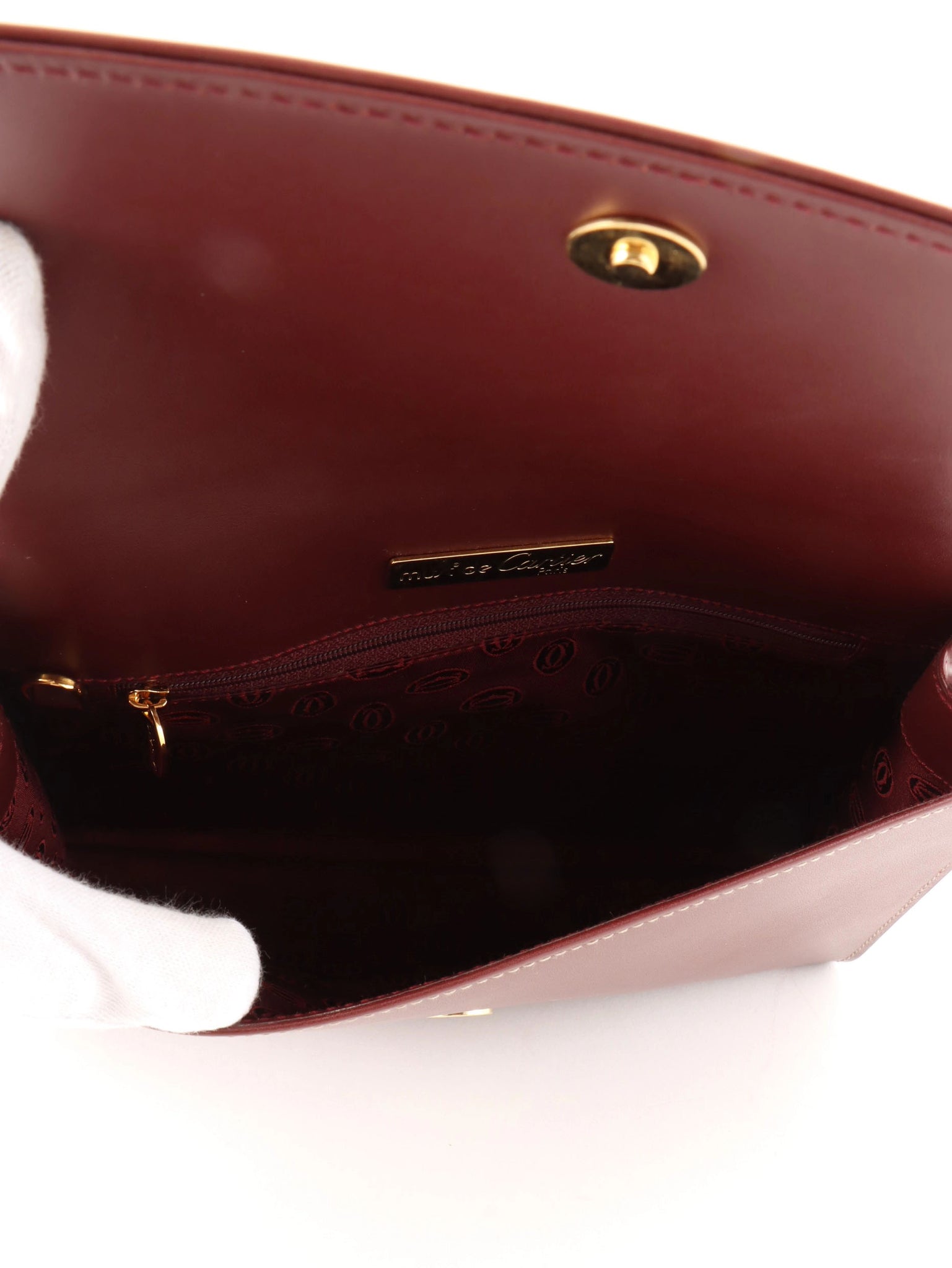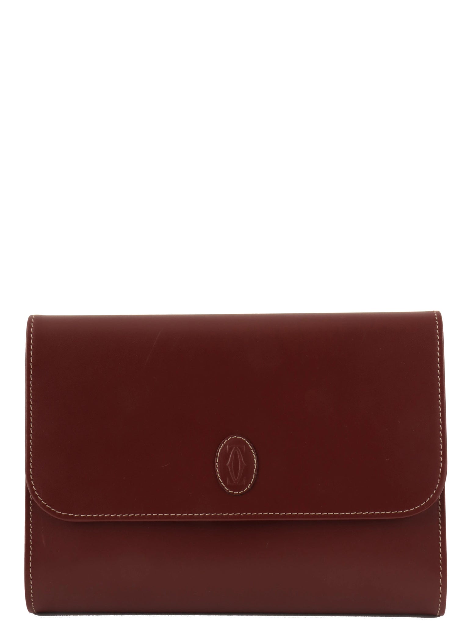 Logo embossed clutch bag in burgundy