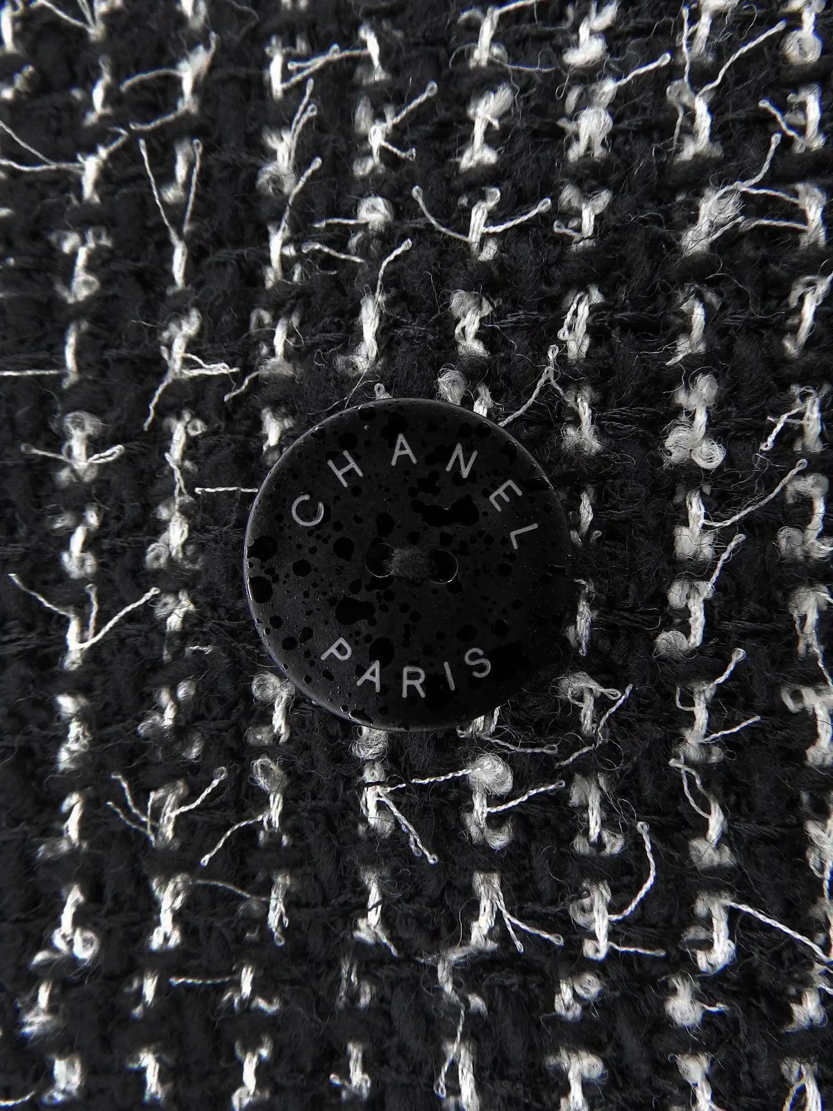 2003 Tweed Logo Button Camellia Corsage Jacket in Black/White