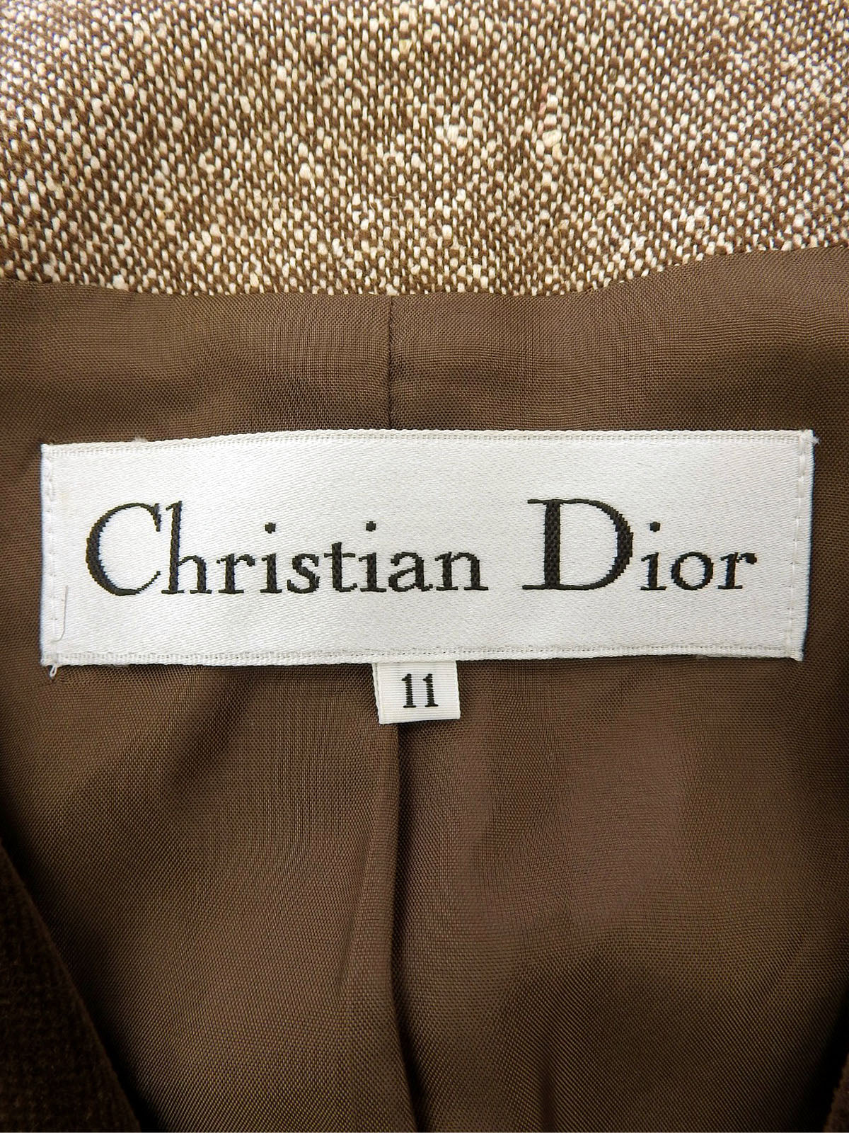Double-breasted collarless jacket in beige/brown