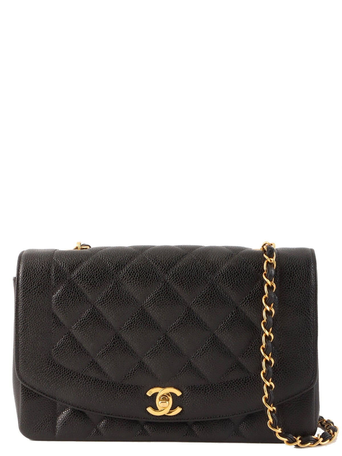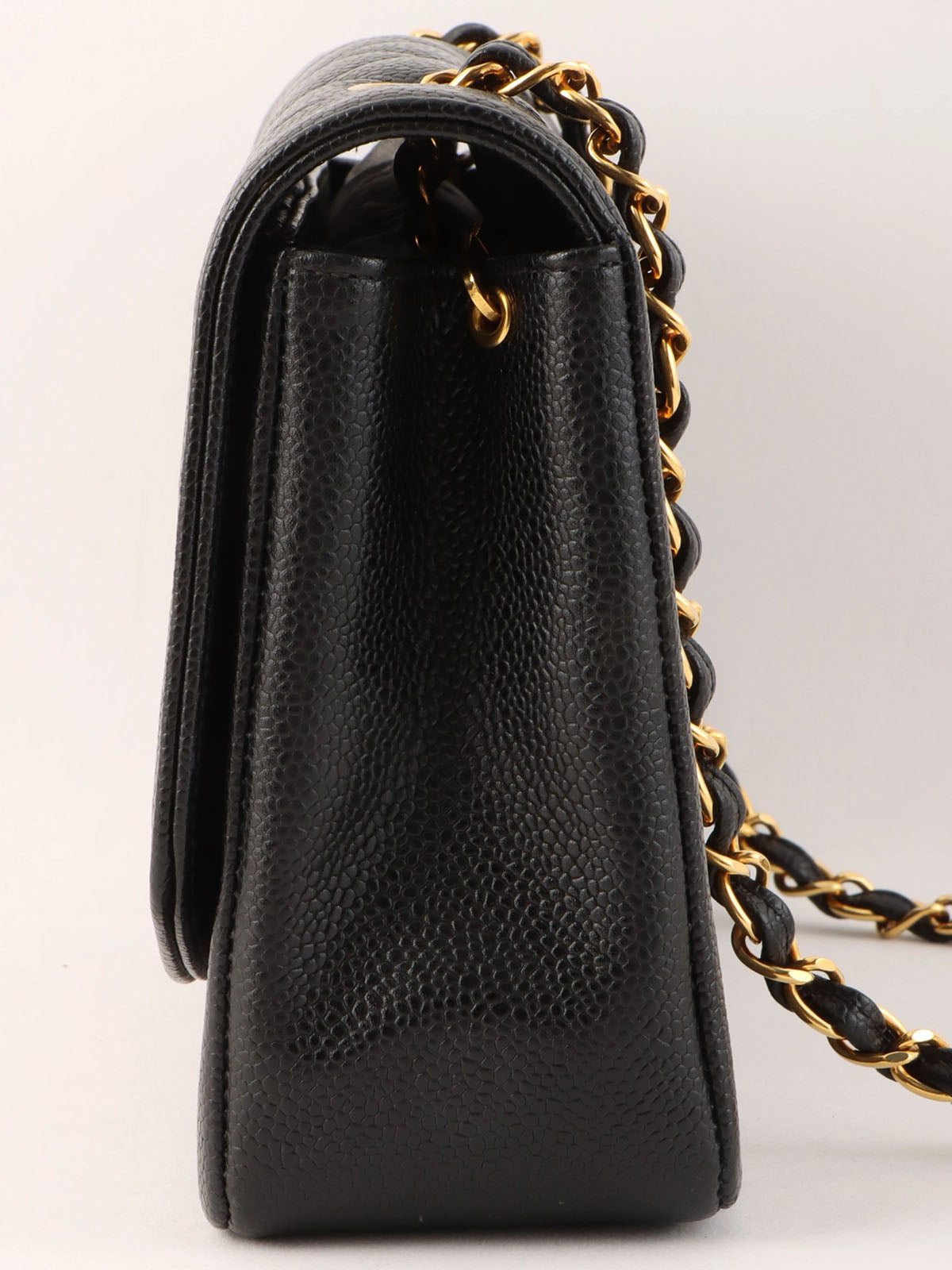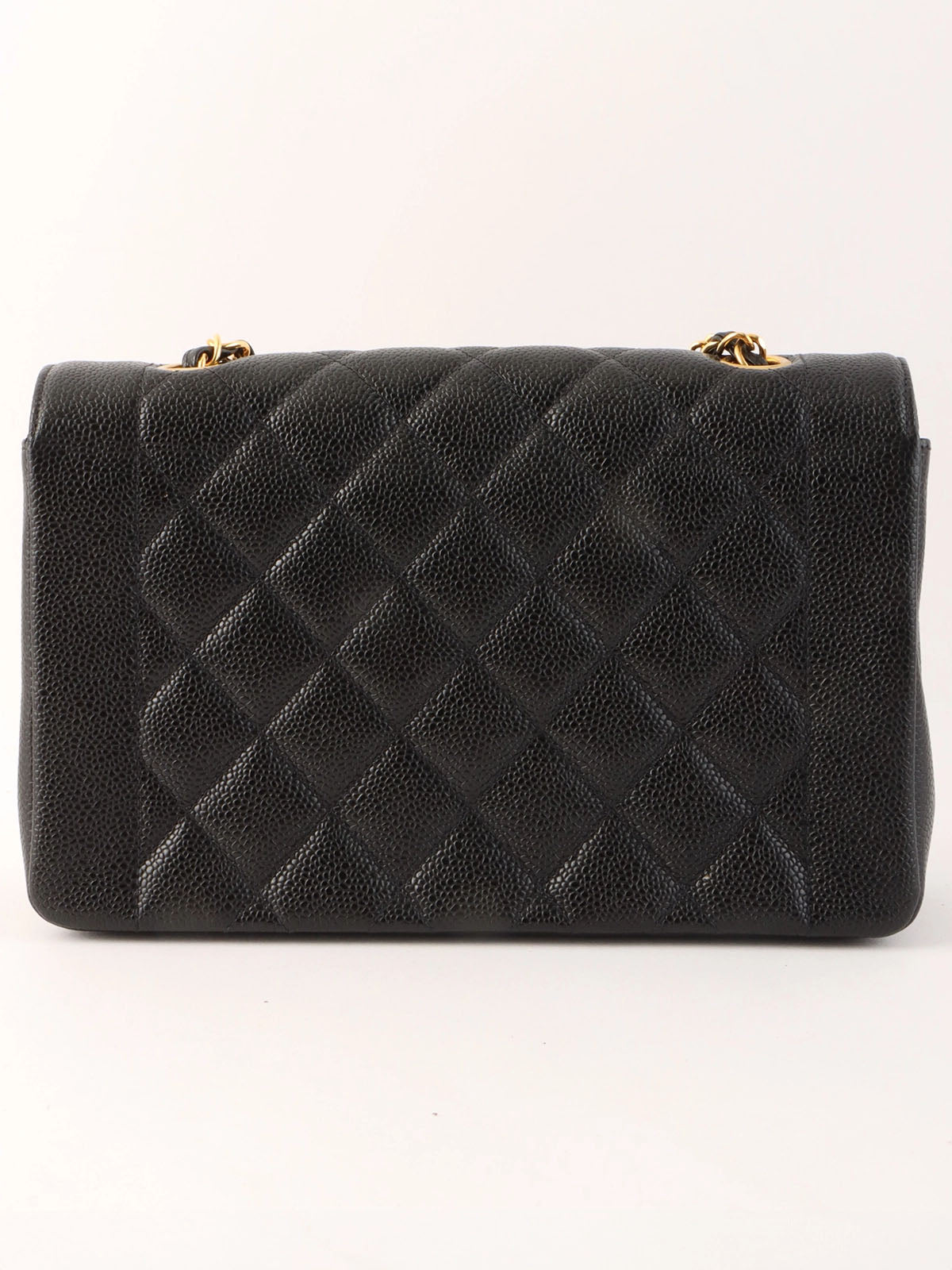1995 Diana Flap Chain Bag, 25cm, Black, Caviar Skin
