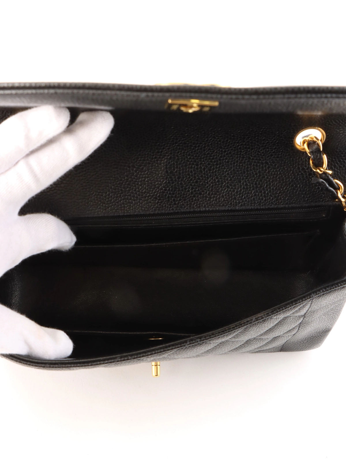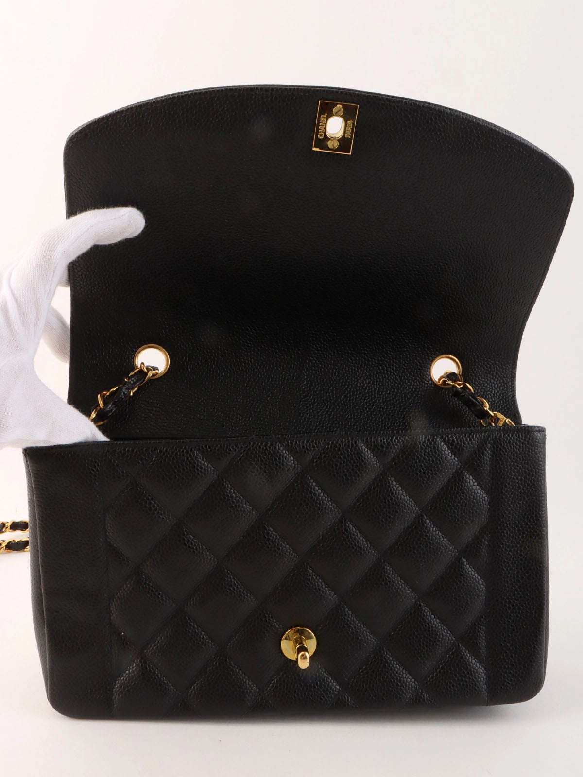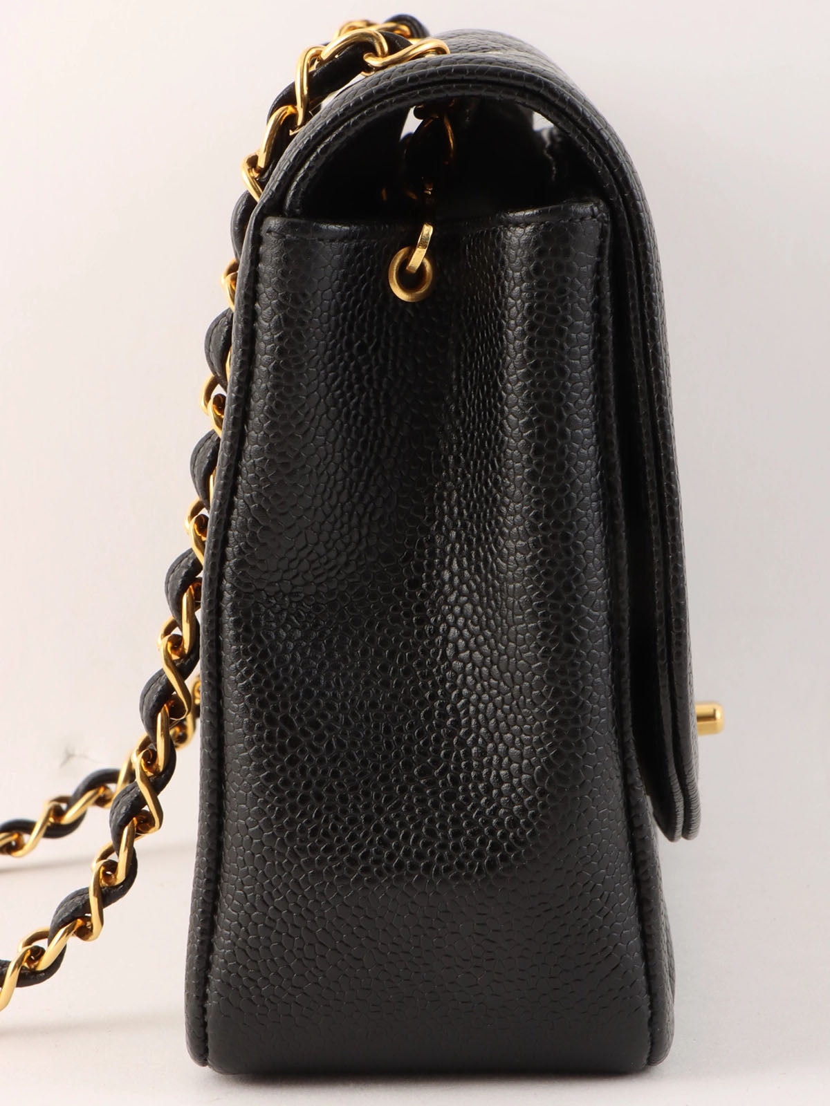 1995 Diana Flap Chain Bag, 25cm, Black, Caviar Skin