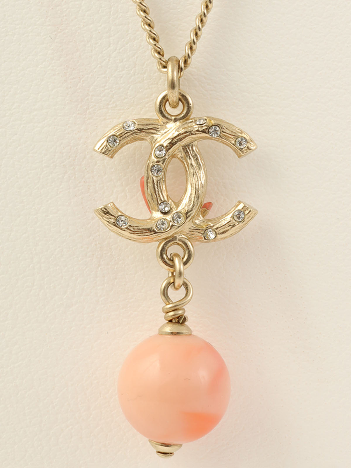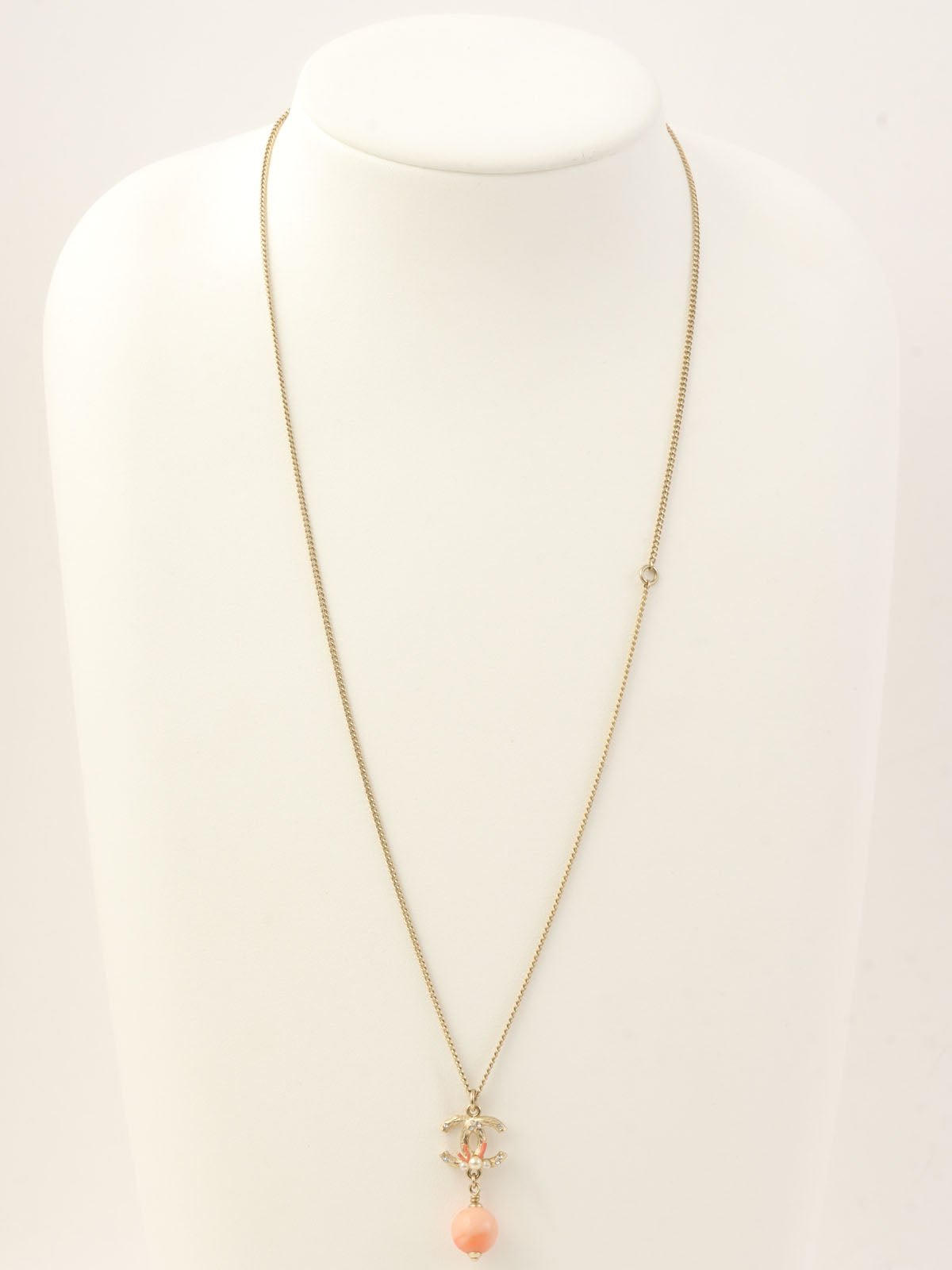 2012 CC Mark Pink Pearl Necklace Gold/Pink