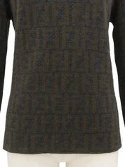 Wool FF Zucca Pattern Turtleneck Knit Top in Gray/Khaki