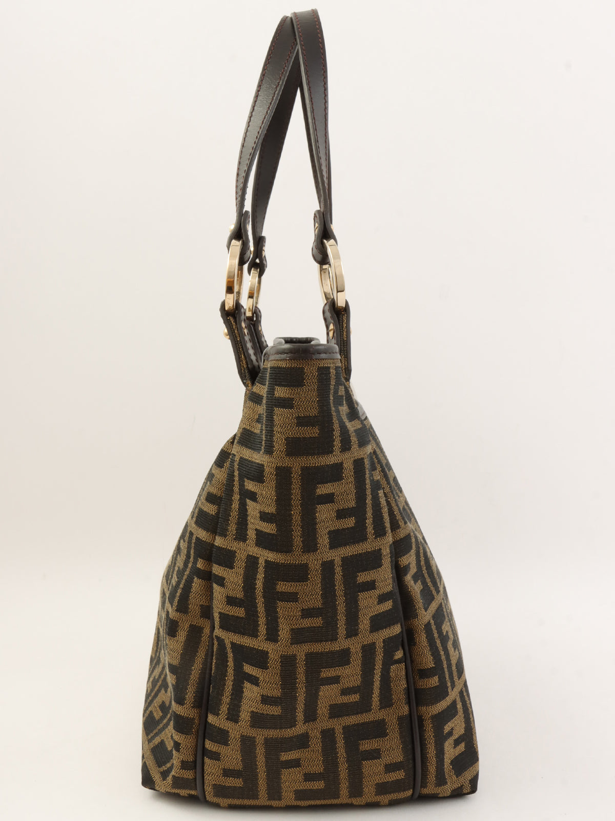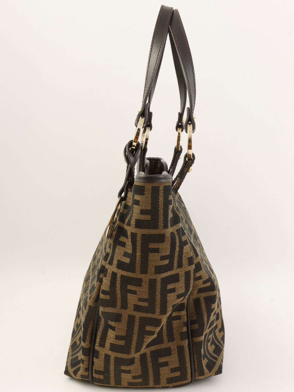 FF Zucca Pattern Logo Charm Tote Bag Brown