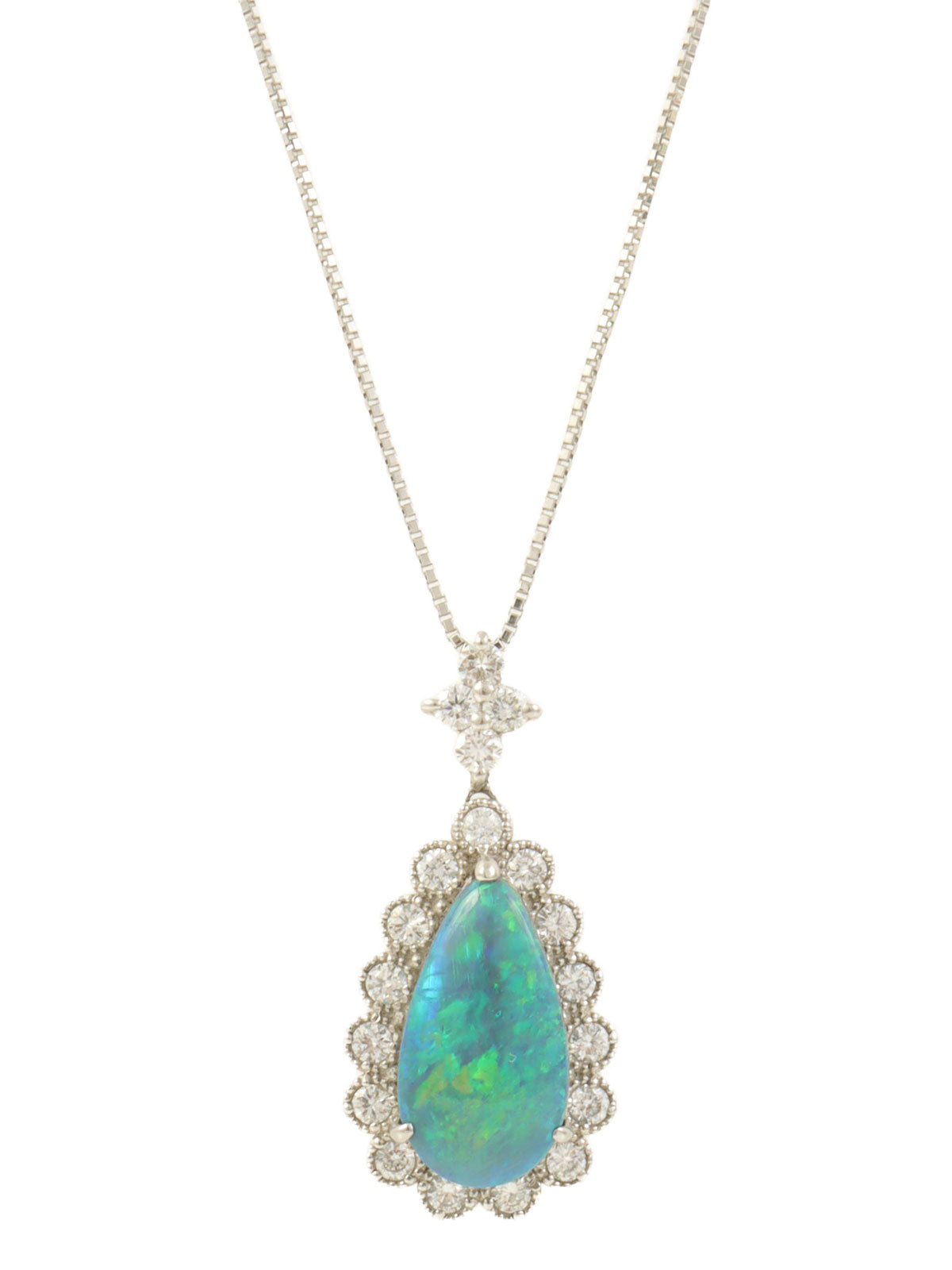Pt900 Diamond Black Opal Necklace Silver/Green