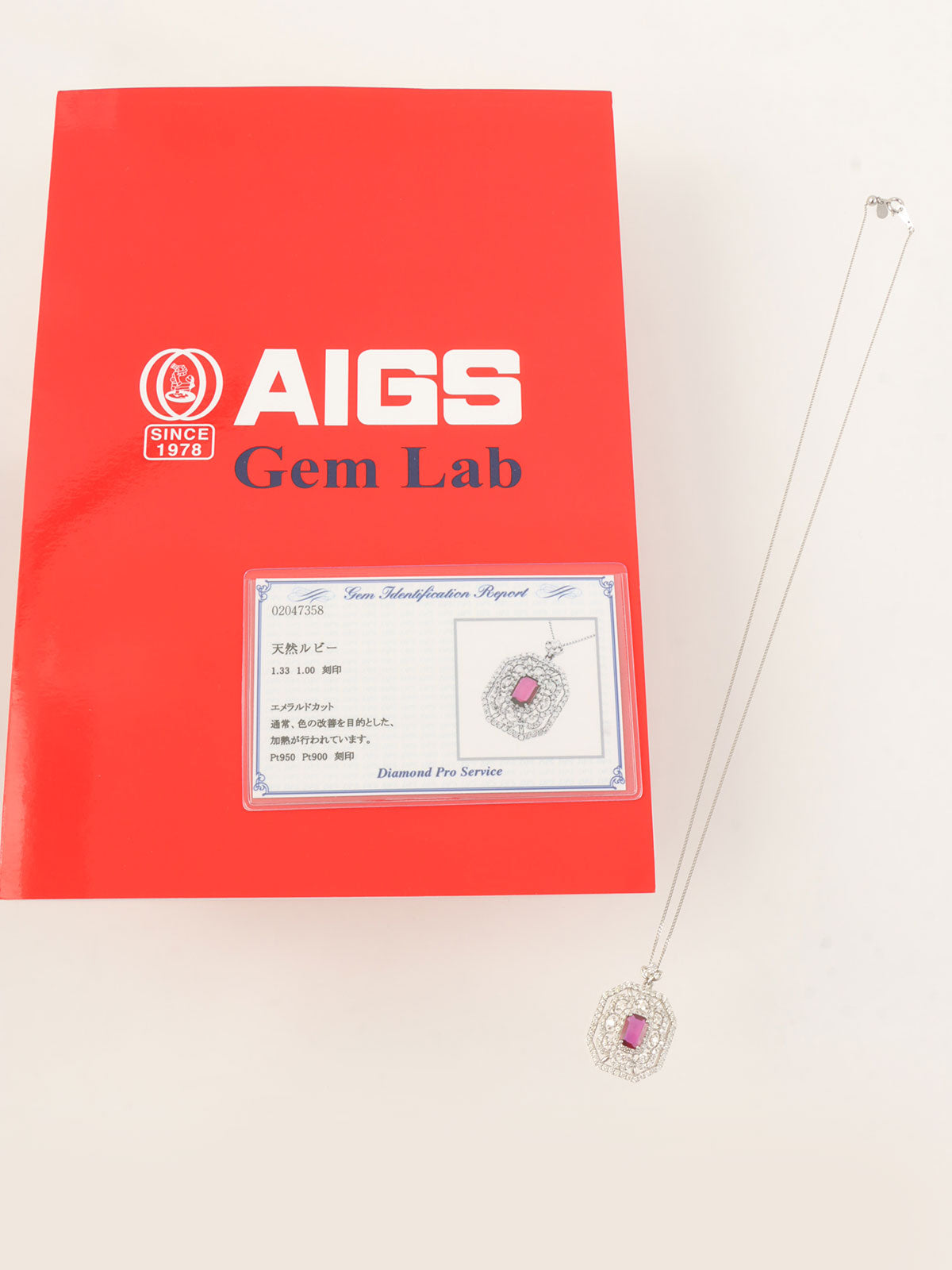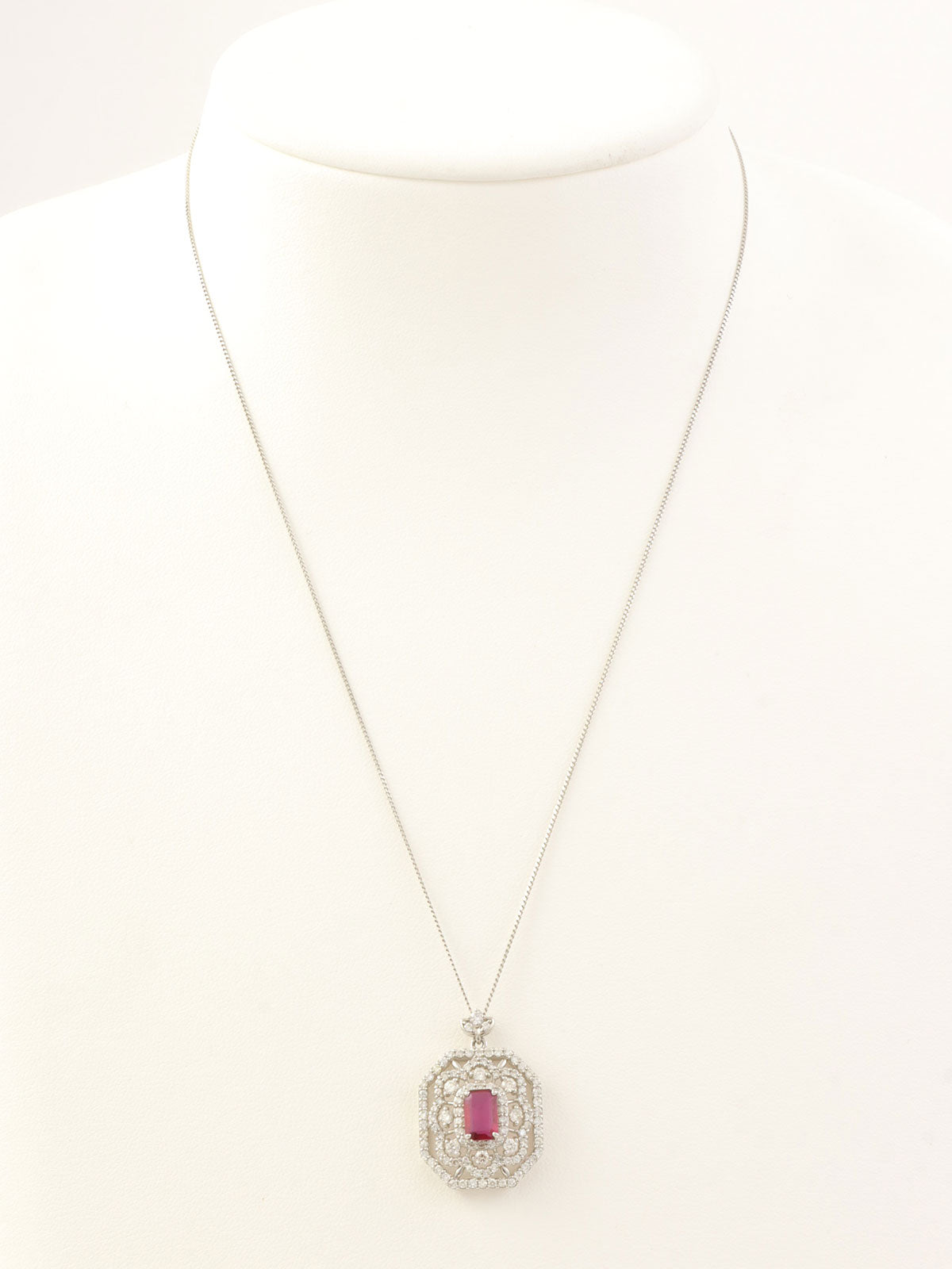 Platinum Ruby Diamond Flower Design Necklace in Silver/Cherry Red