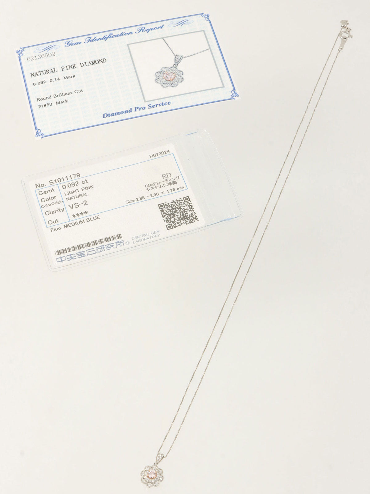 Platinum Pink Diamond Flower Motif Necklace in Silver/Pink