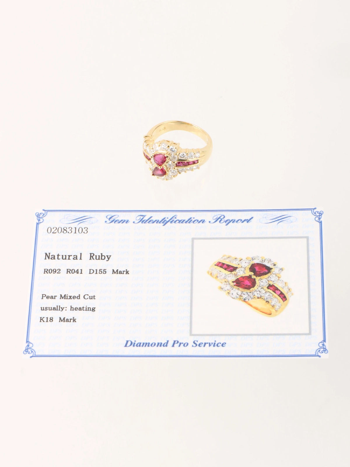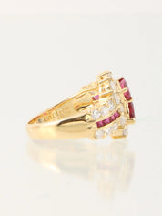 18K Gold/Cherry Red Diamond and Ruby Motif Ring