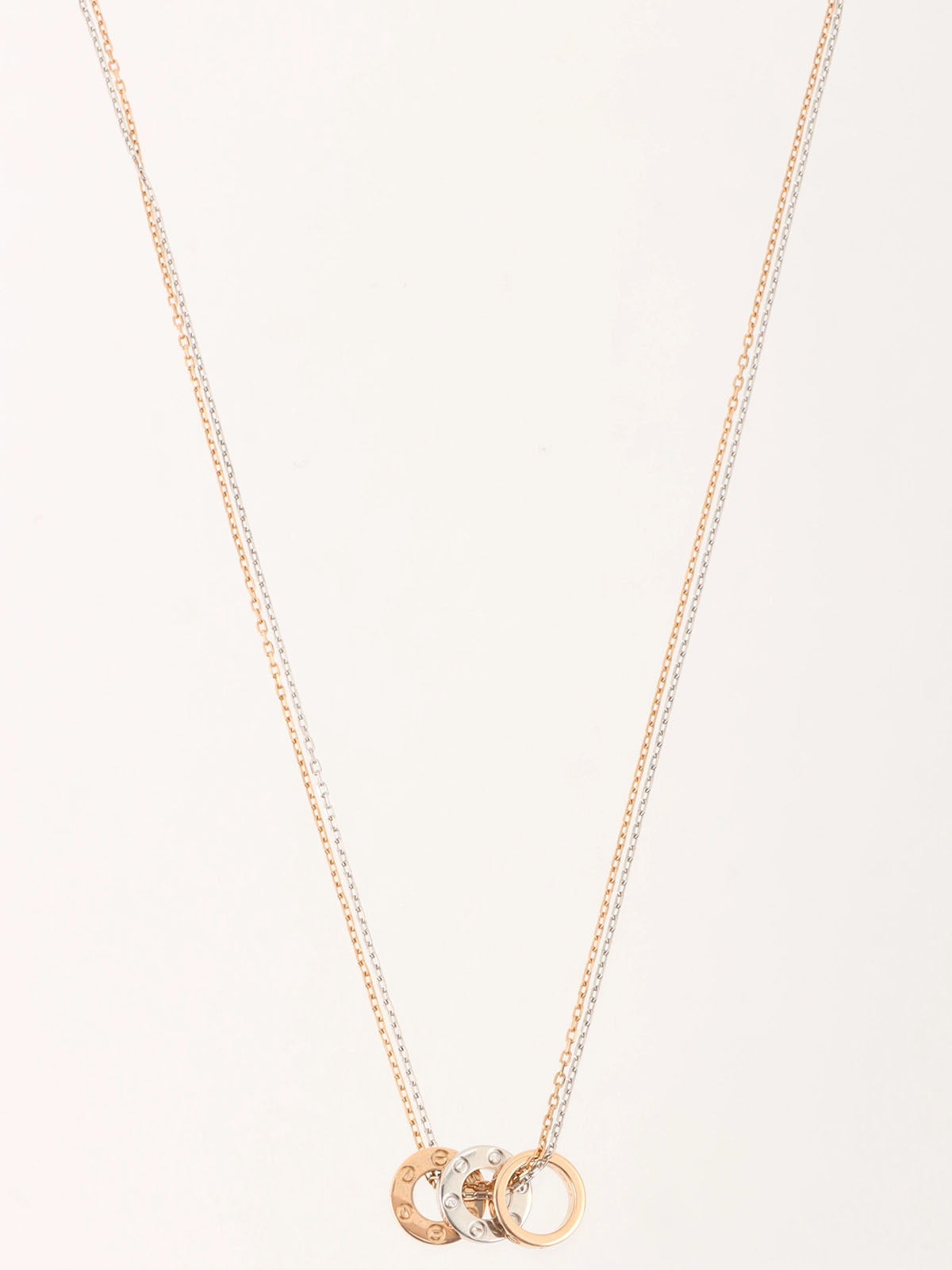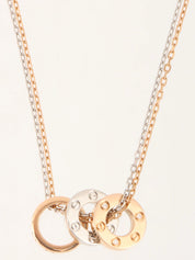 18K Diamond Love Three Hoop Necklace in Silver/Rose Gold