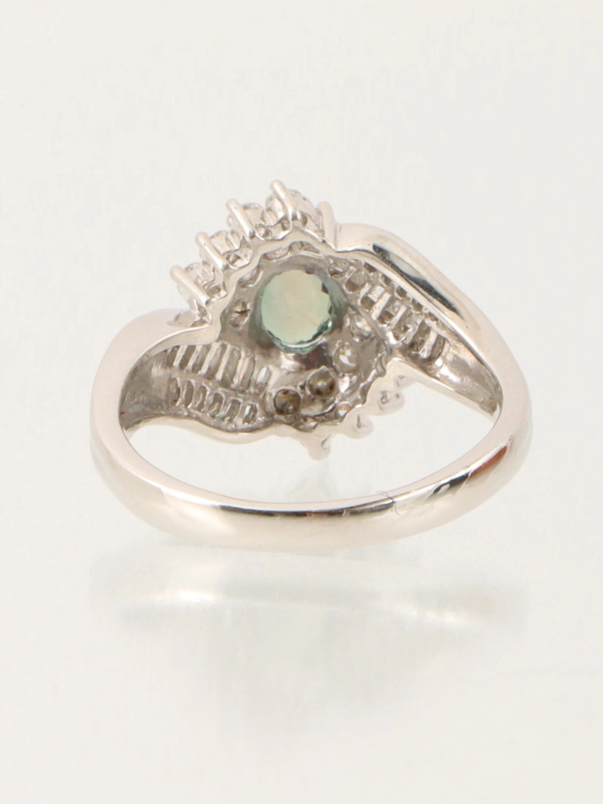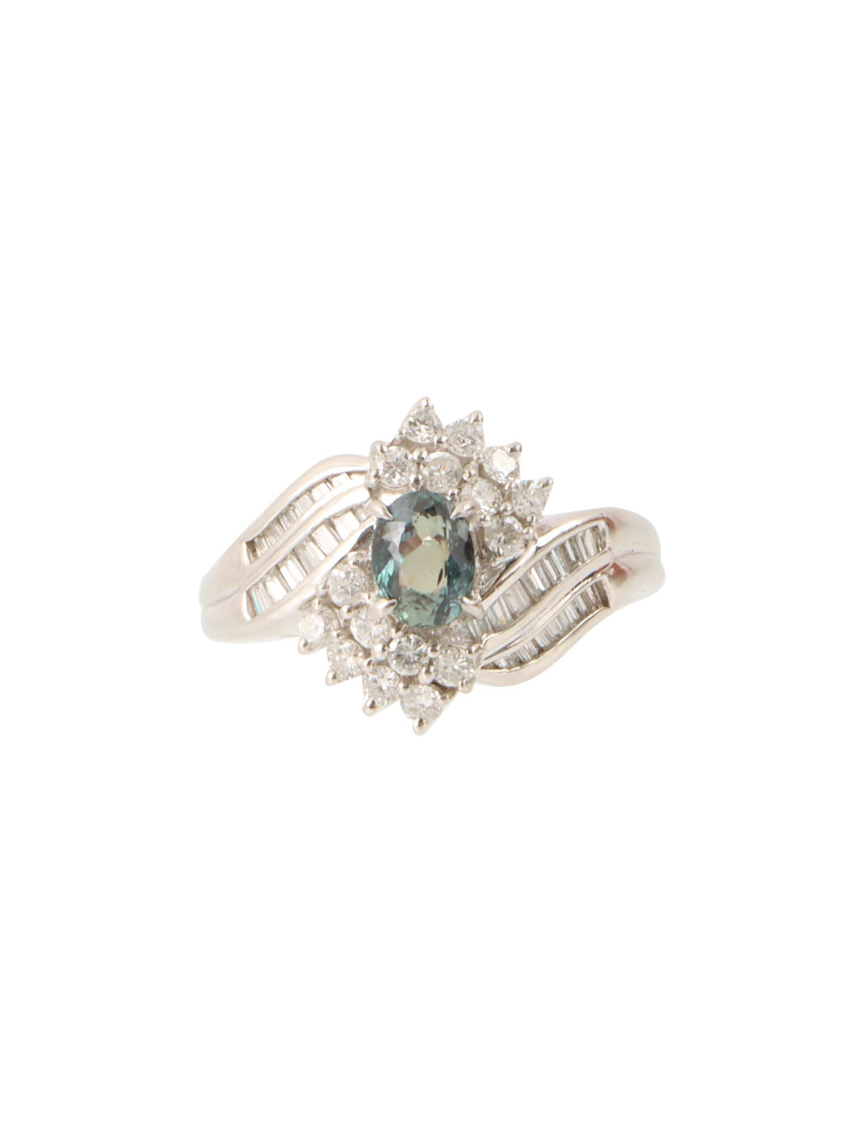 Platinum Alexandrite Diamond Design Motif Ring Blue/Silver