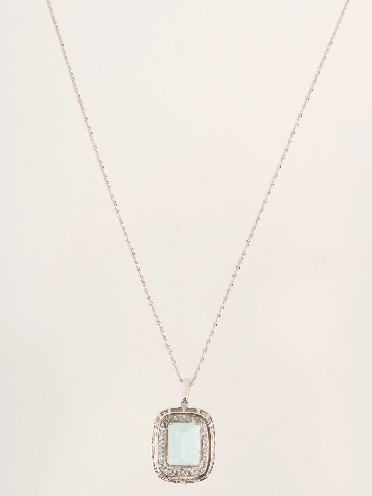 Platinum Aquamarine Diamond Square Necklace in Silver/Light Blue
