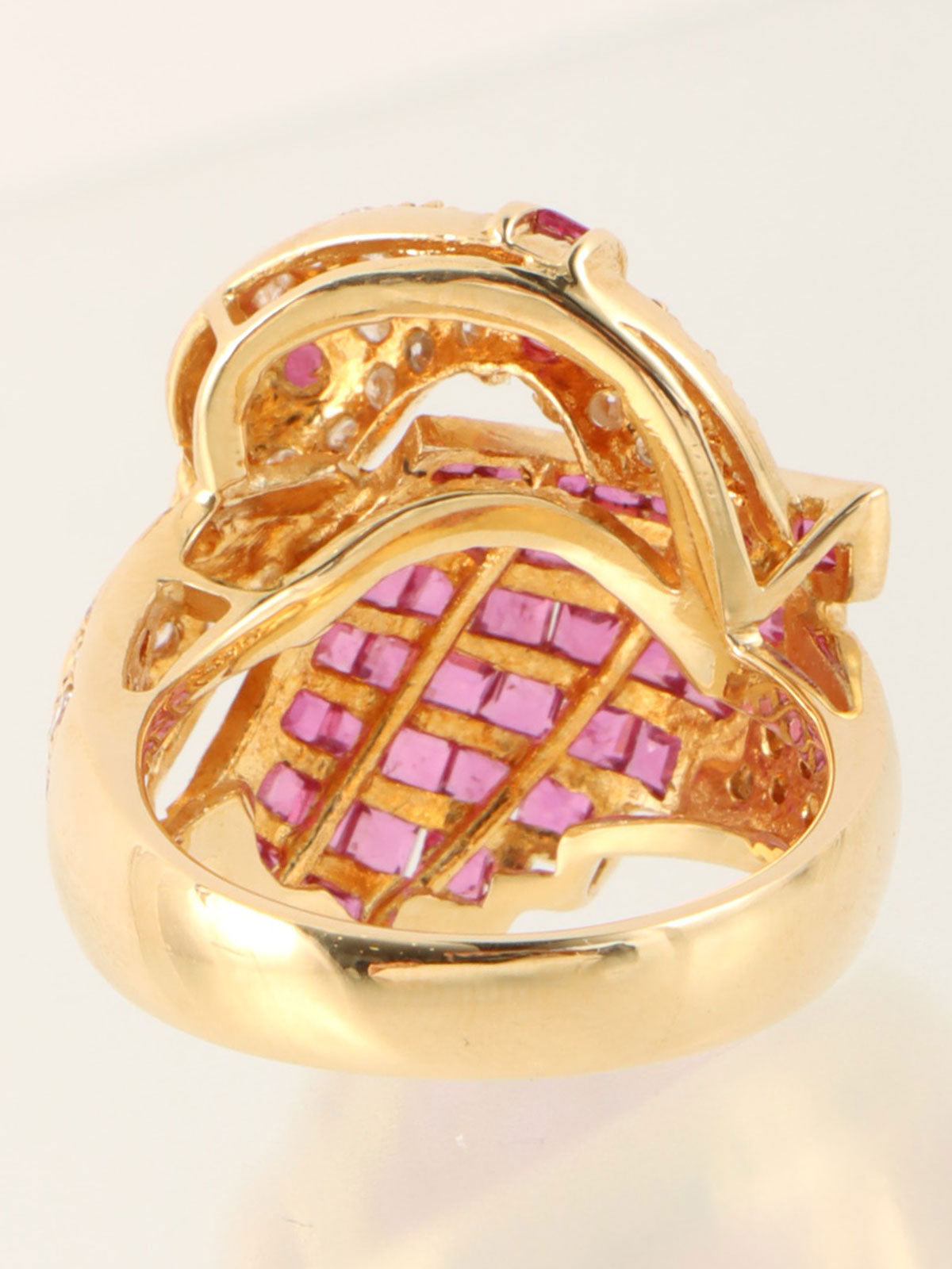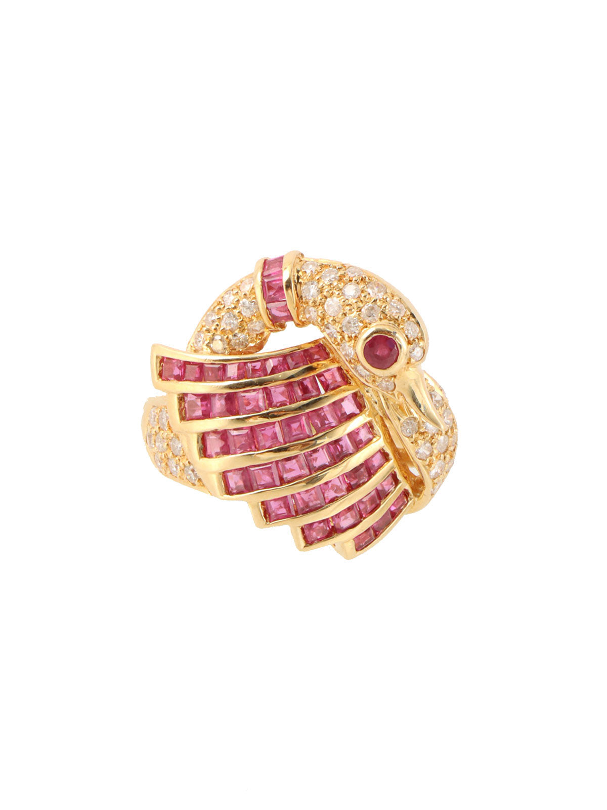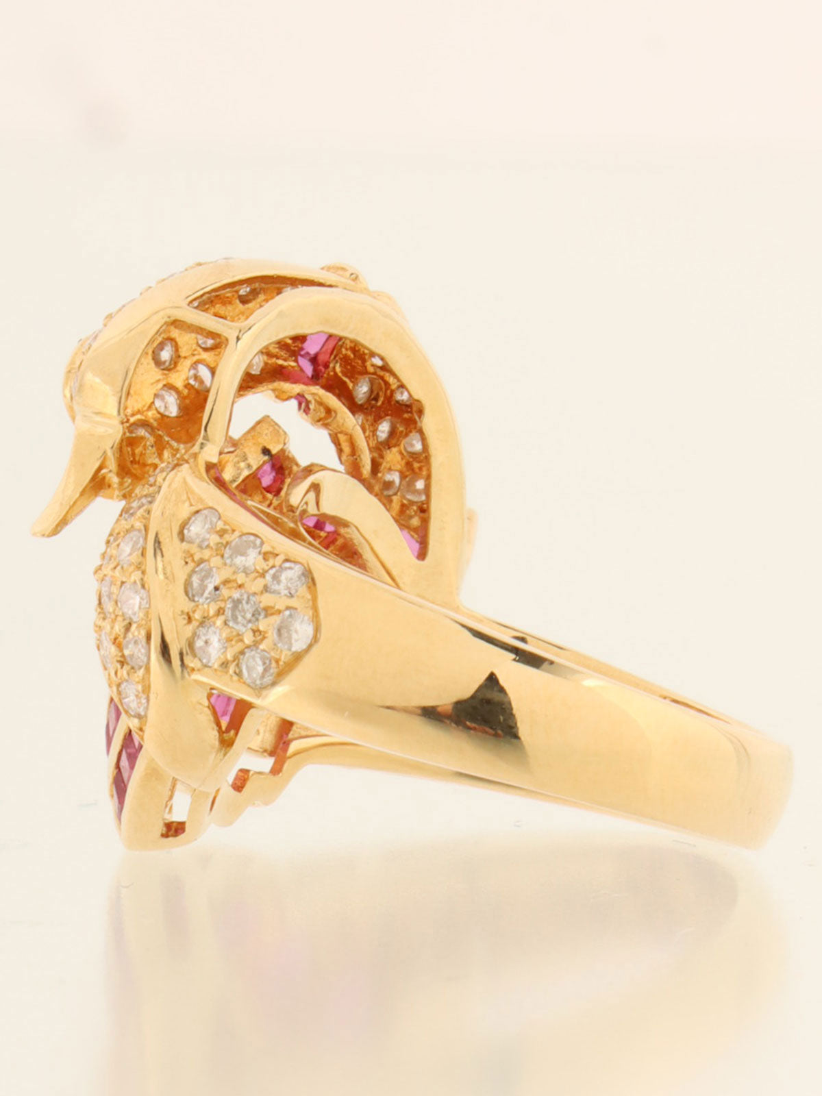 18K Diamond Ruby Swan Motif Ring in Gold/Pink