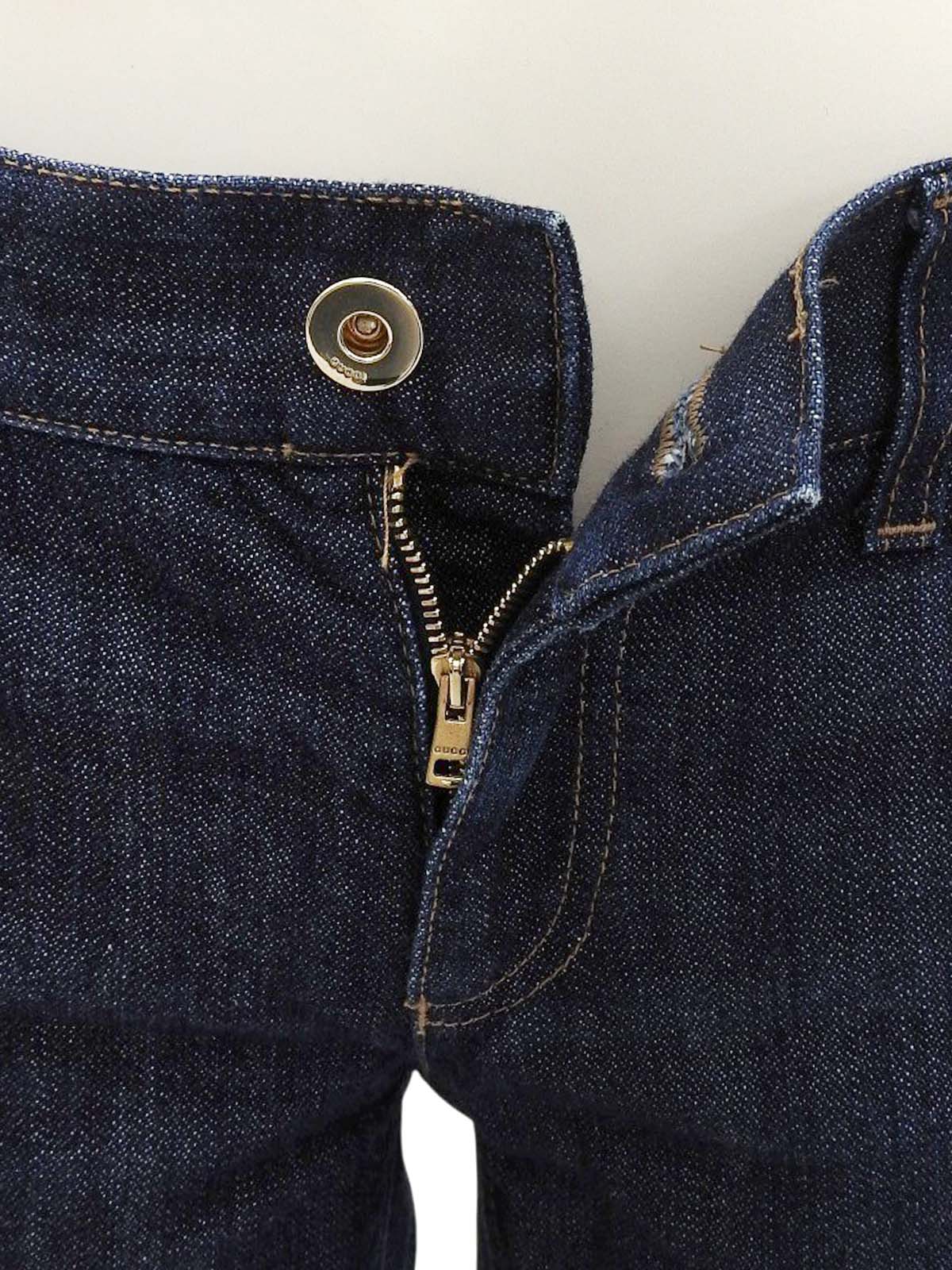 Logo Button Bootcut Denim Pants in Indigo