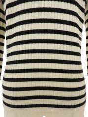 2006 Border Pattern CC Mark Button Knit Sweater, Ivory/Black