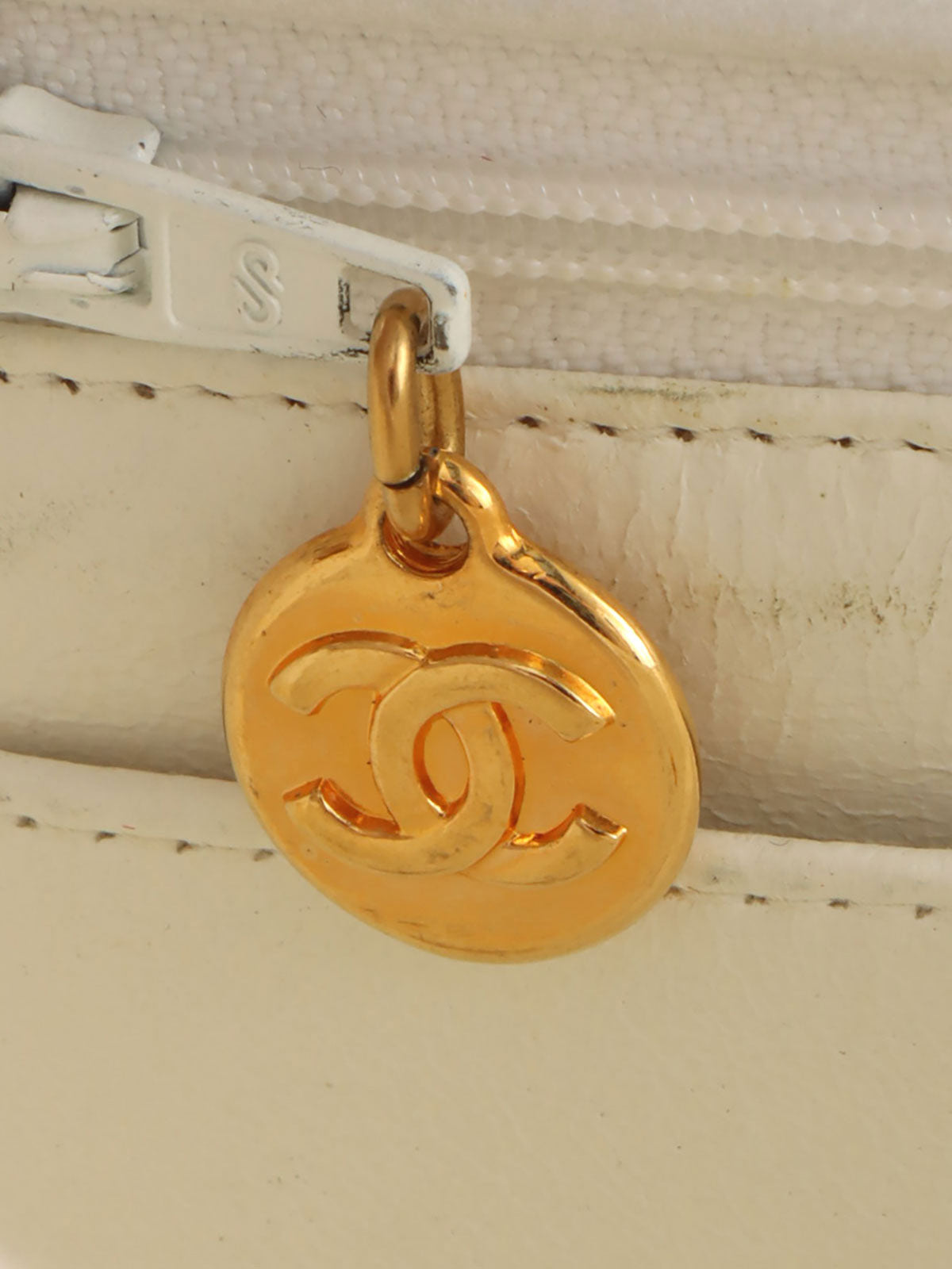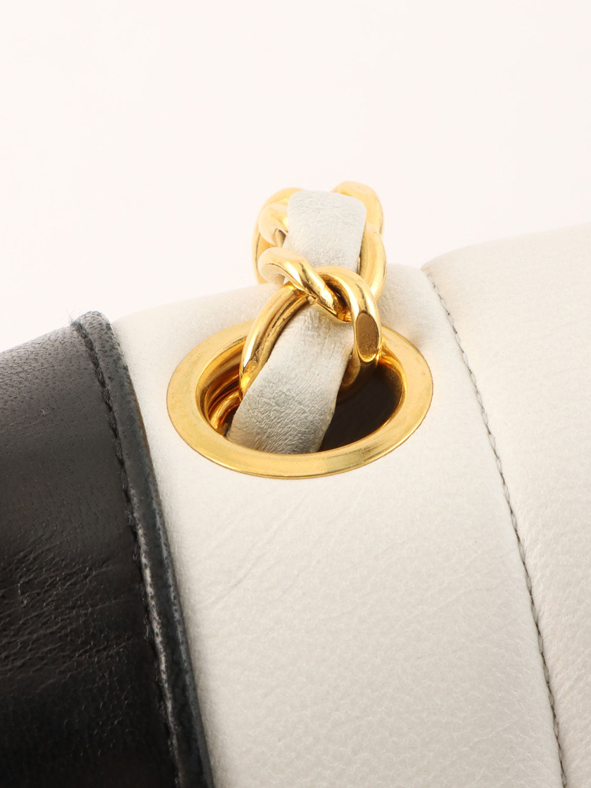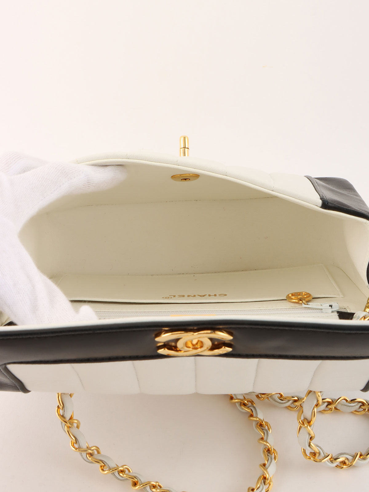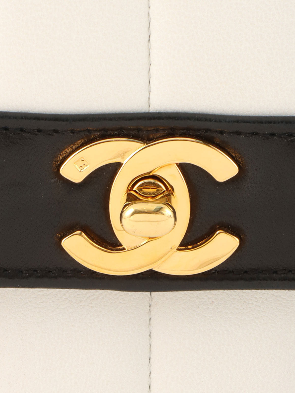 Mademoiselle Stitch Bicolor CC Turnlock Chain Shoulder Bag, White/Black, circa 1992