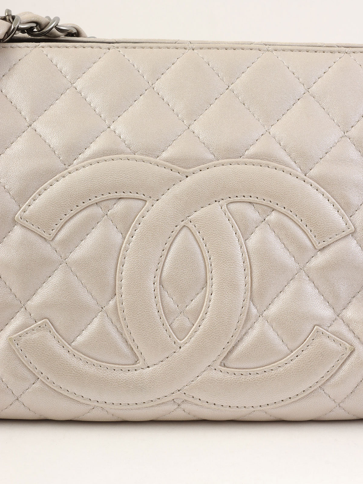 Circa 2008 CC Mark Stitch 2.55 Charm Chain Shoulder Bag in Silver/Black