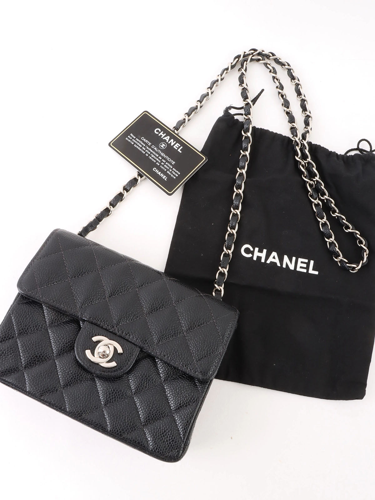 2003 Caviar Skin Classic Flap Chain Bag Mini Black