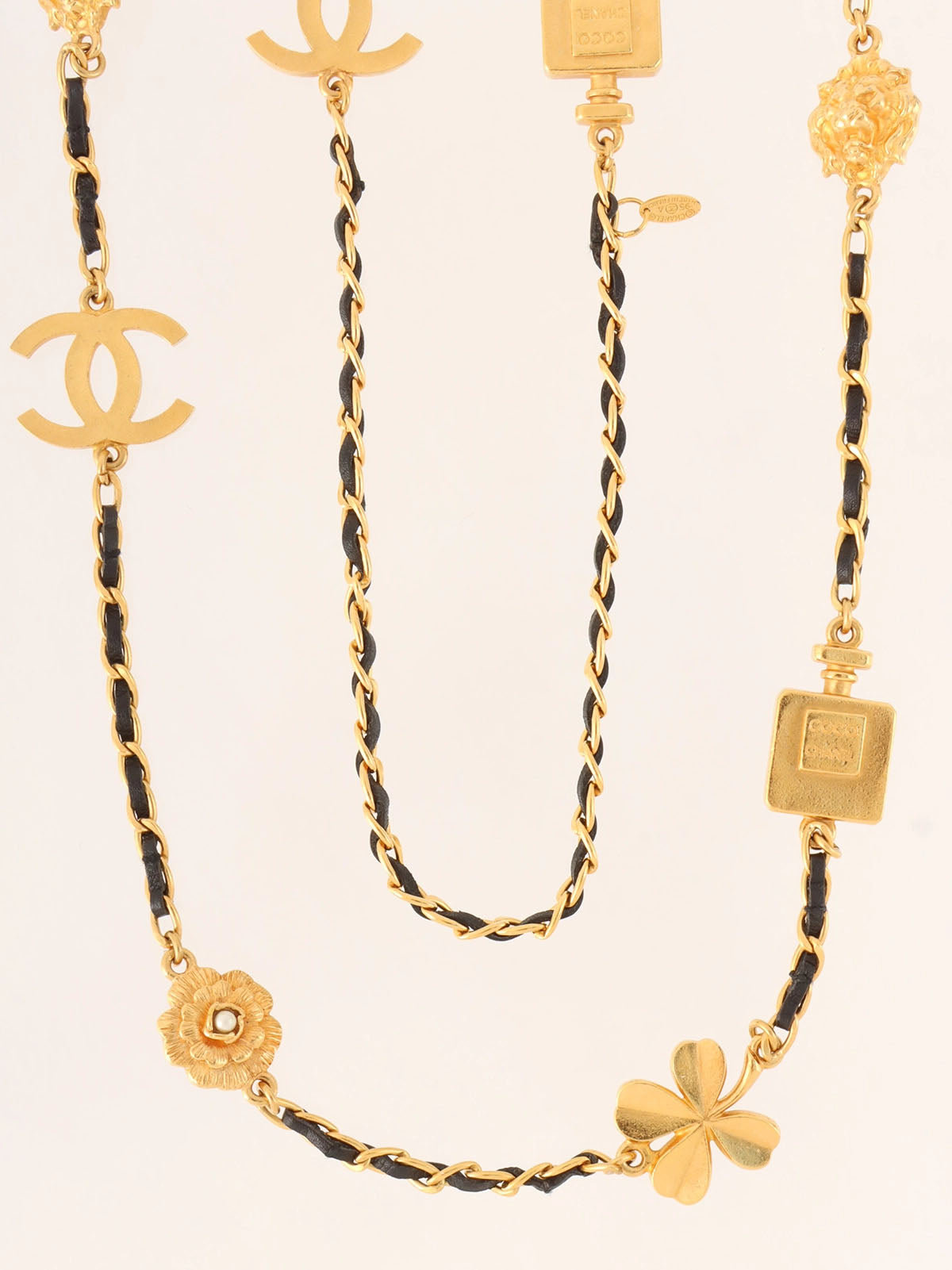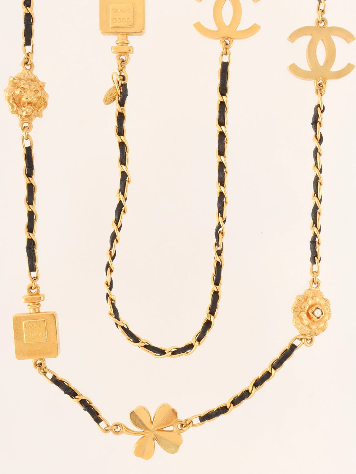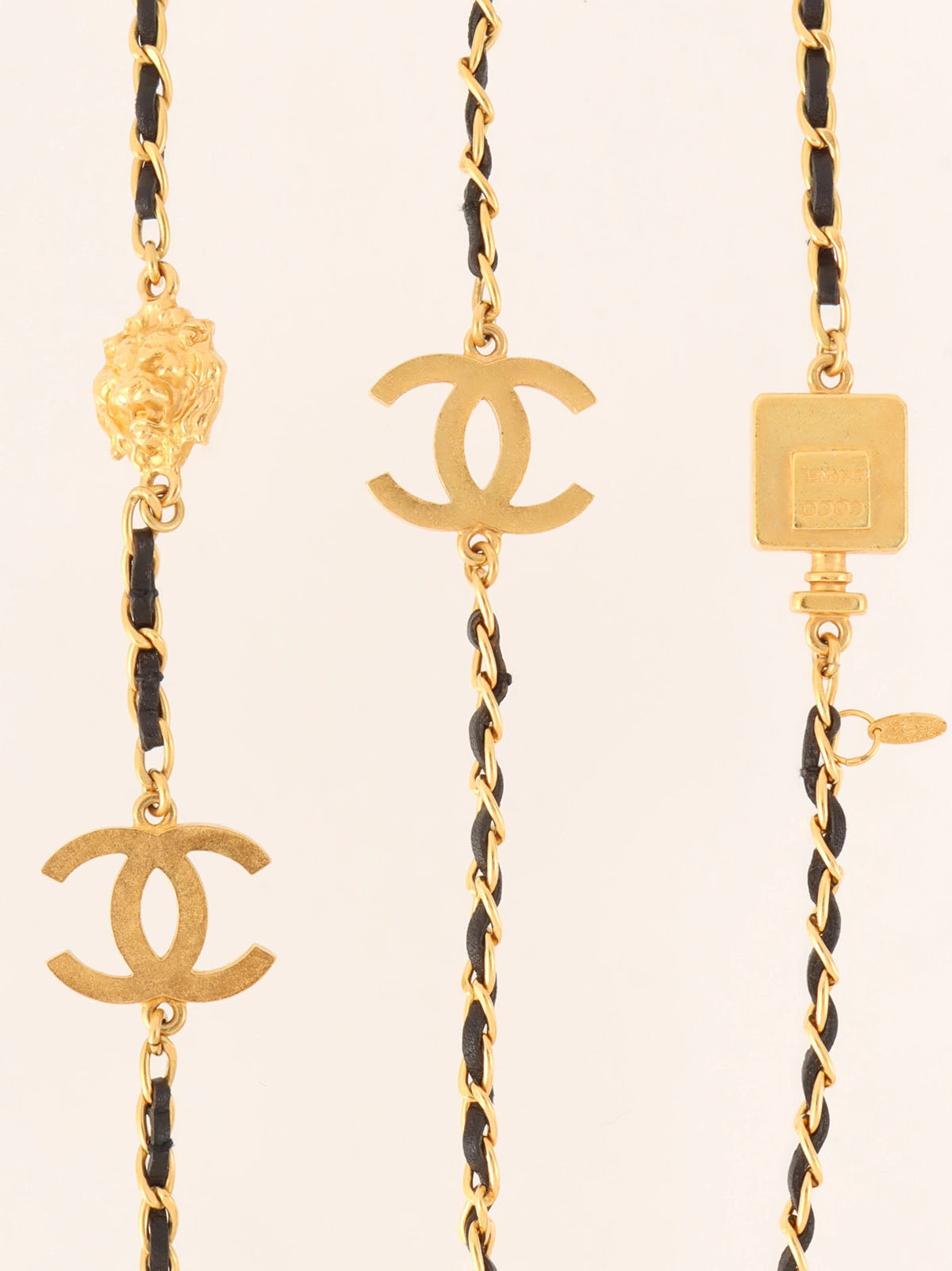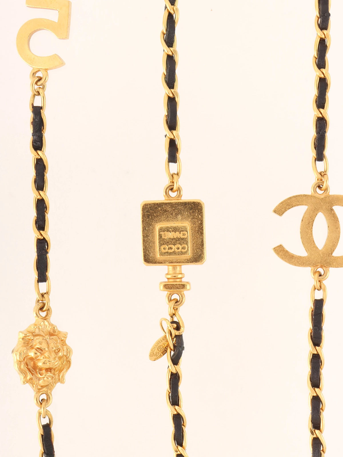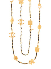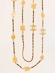 1995 Multi-Motif Chain Long Necklace Gold/Black