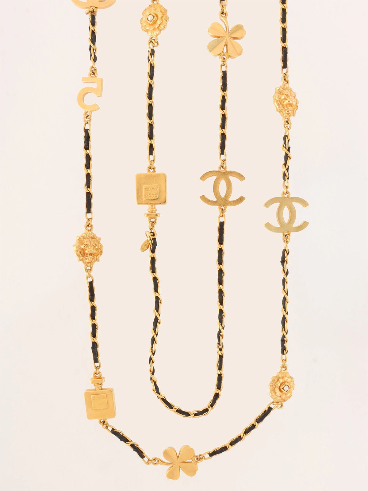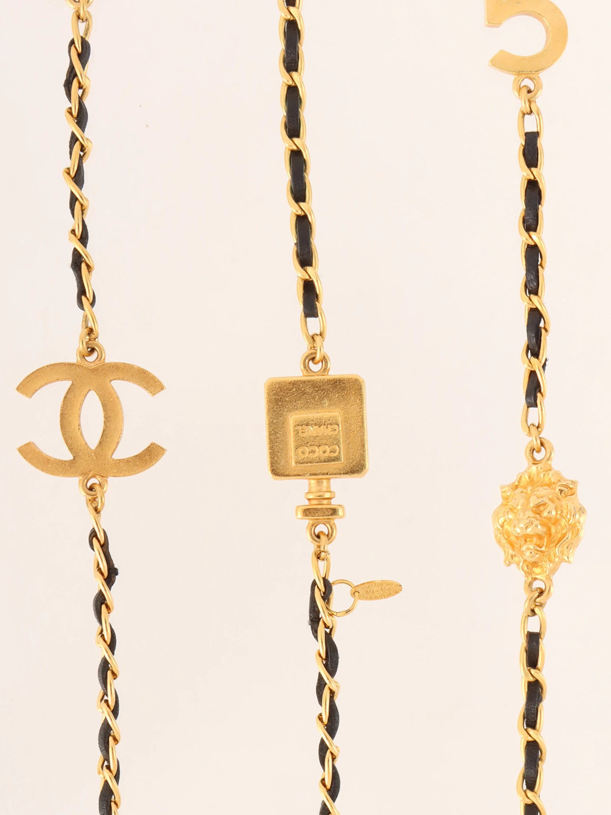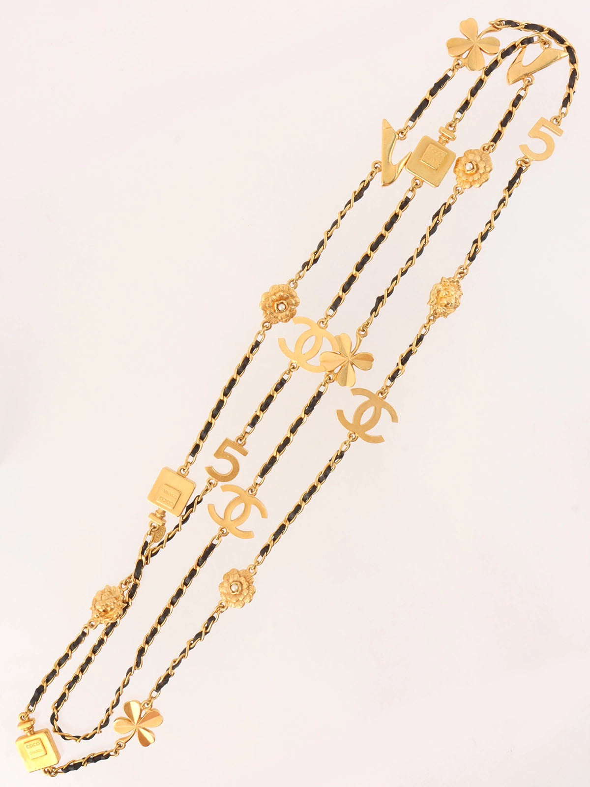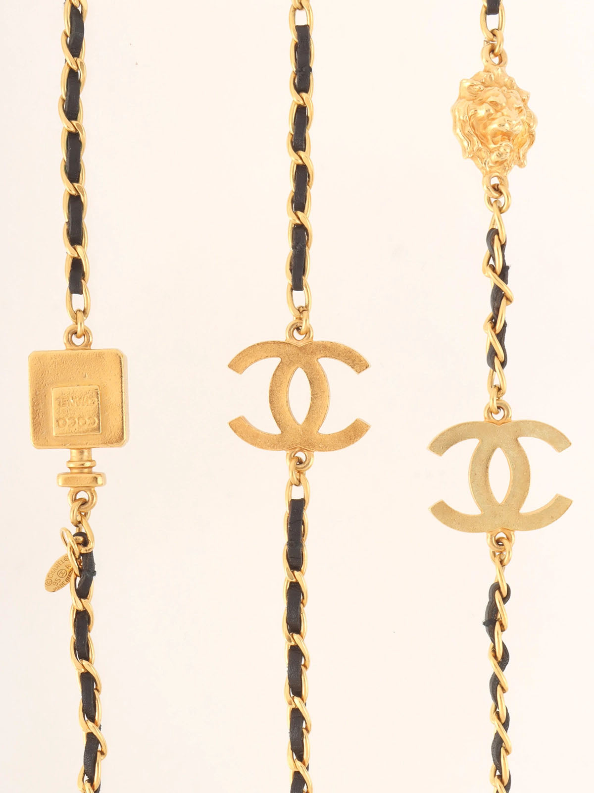 1995 Multi-Motif Chain Long Necklace Gold/Black