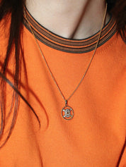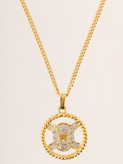 Circle Rhinestone Macadam Plate Necklace in Gold