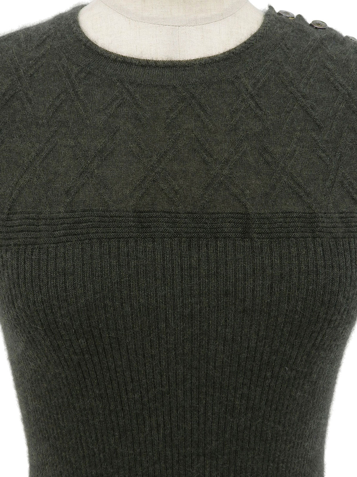 Cashmere CC Mark Button Half Sleeve Knit Sweater in Khaki Gray