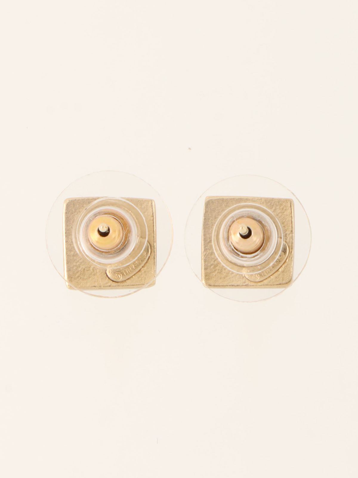 2002 Mini Square CC Turn Lock Earrings, Gold