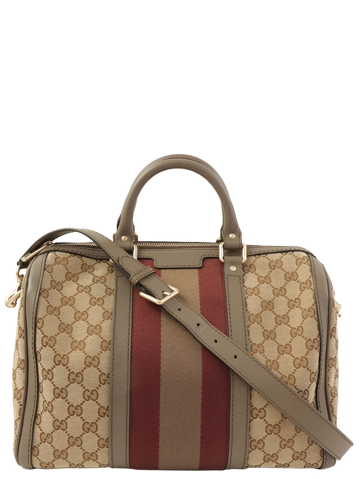 Canvas GG Pattern Sherry Line Boston Bag in Beige/Brown/Bordeaux