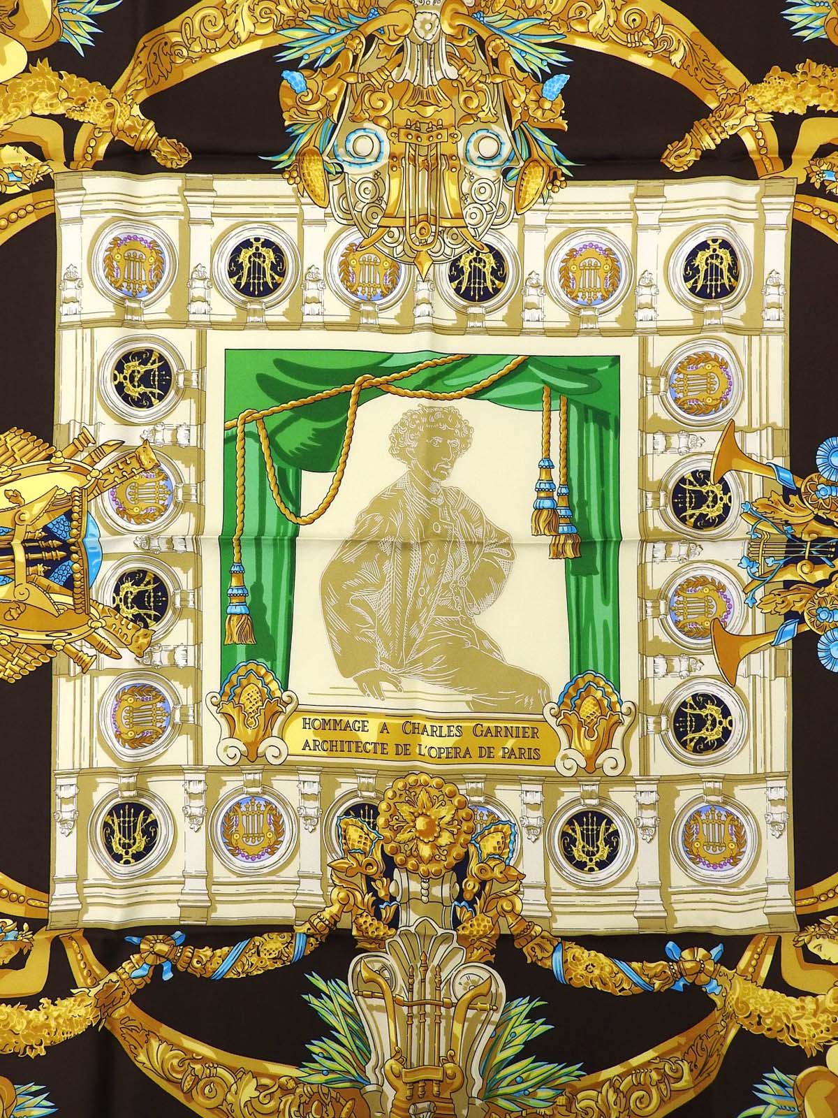 Carré 90 Opera Pattern Scarf Brown/Multi