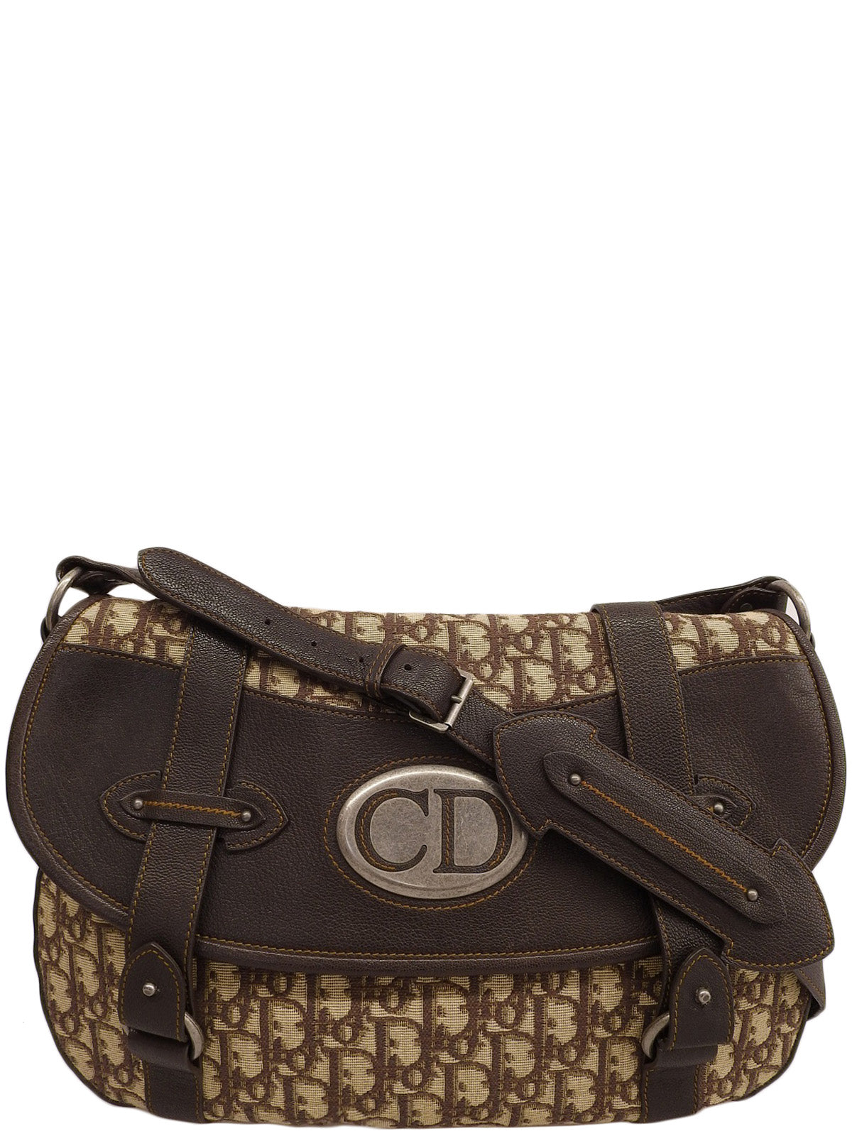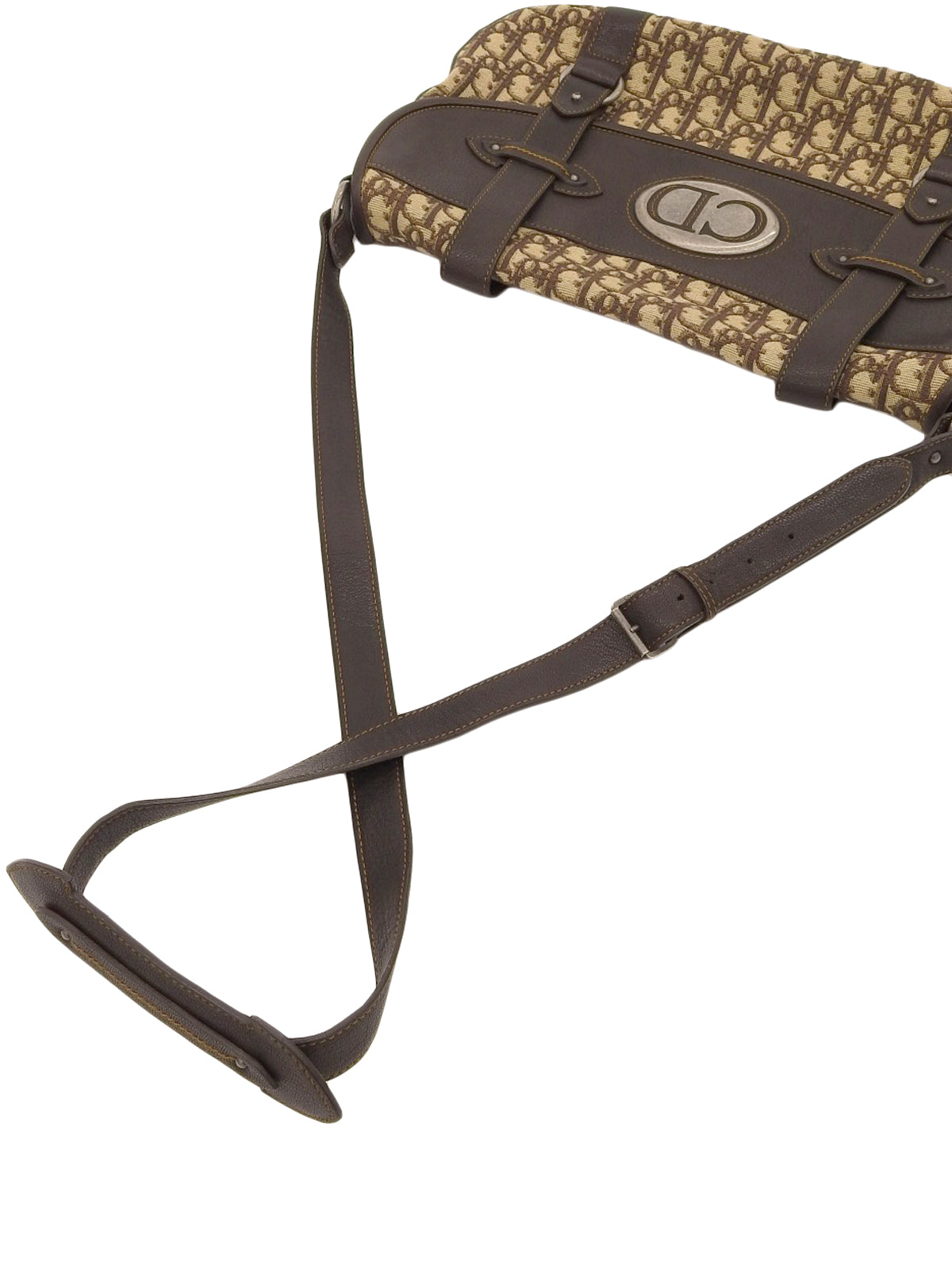トロッターパターンロゴプレートショルダーバッグブラウン