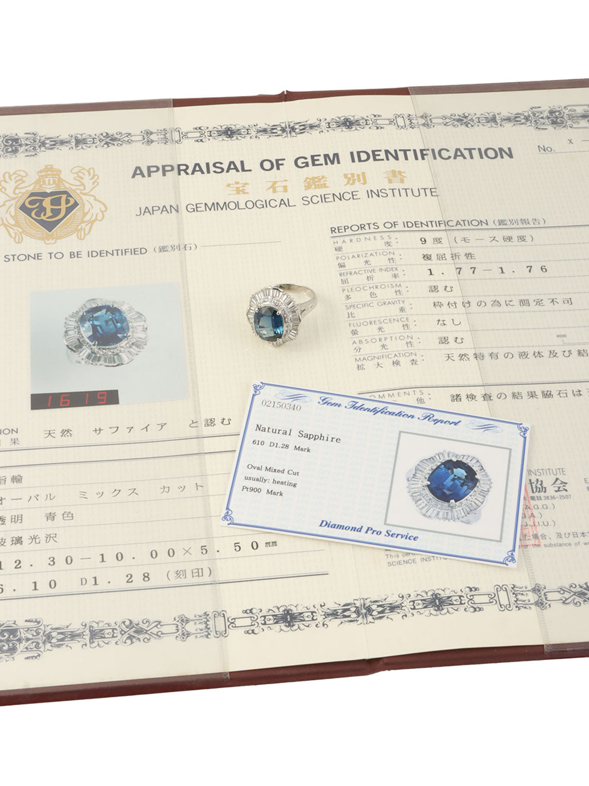 Platinum Sapphire and Diamond Design Ring in Silver/Blue