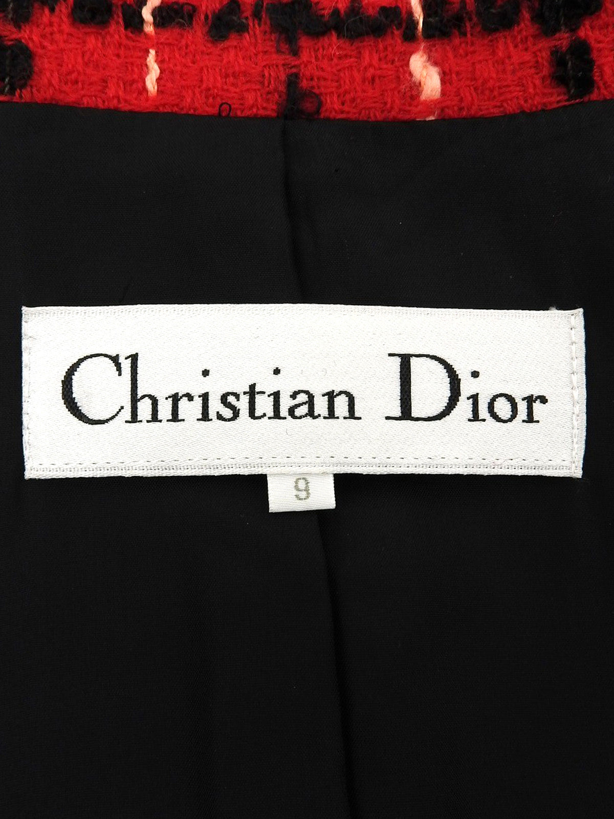 Tweed check pattern double-breasted jacket in red/black/salmon pink