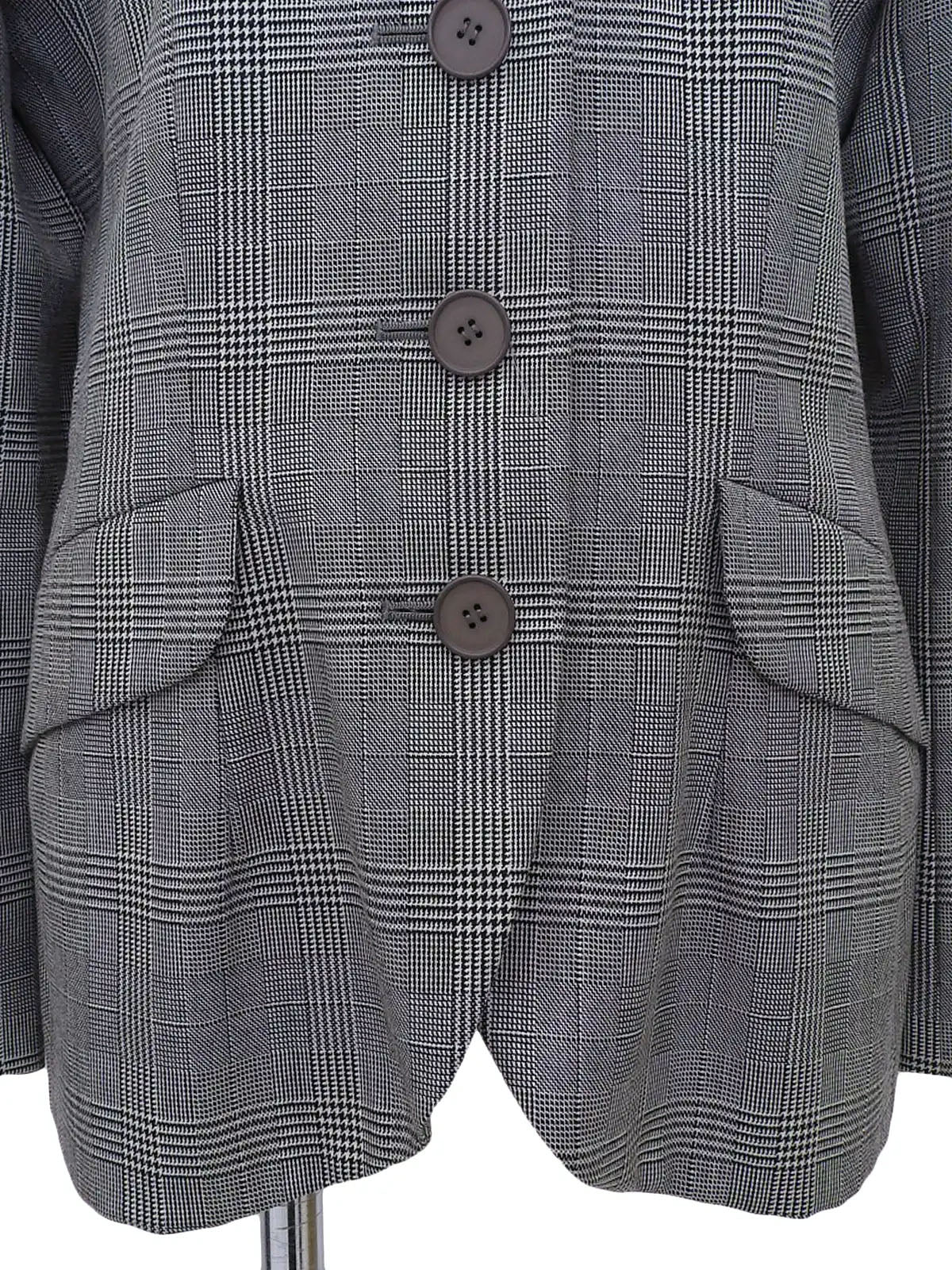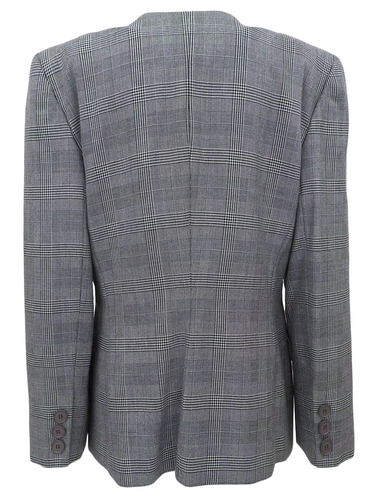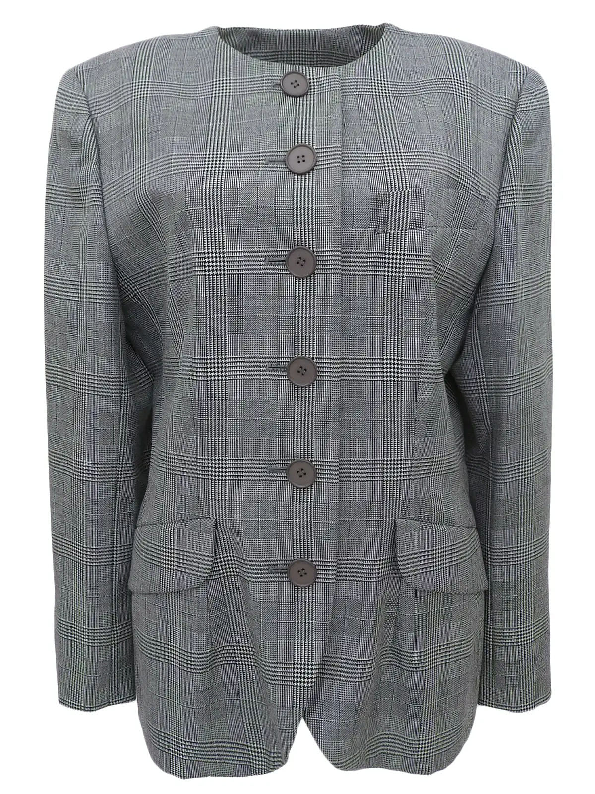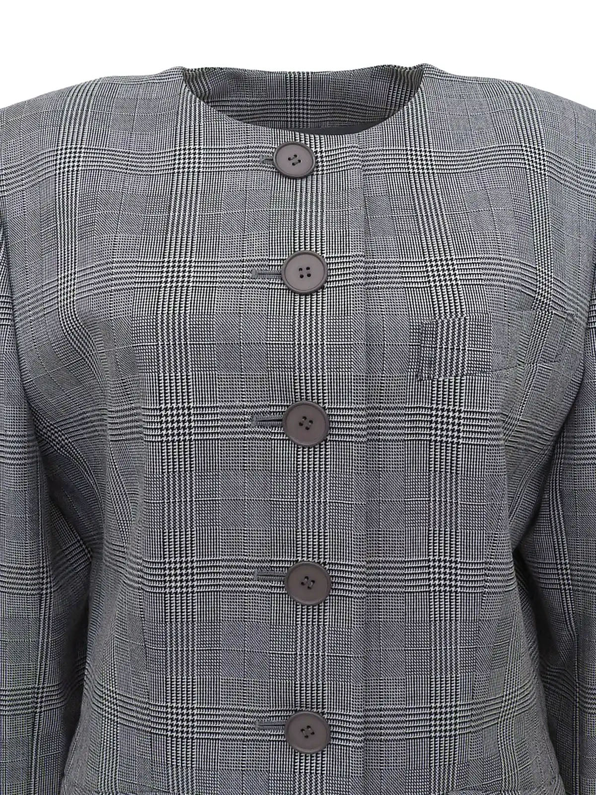 Glen Check Pattern Collarless Jacket in Gray/Multi