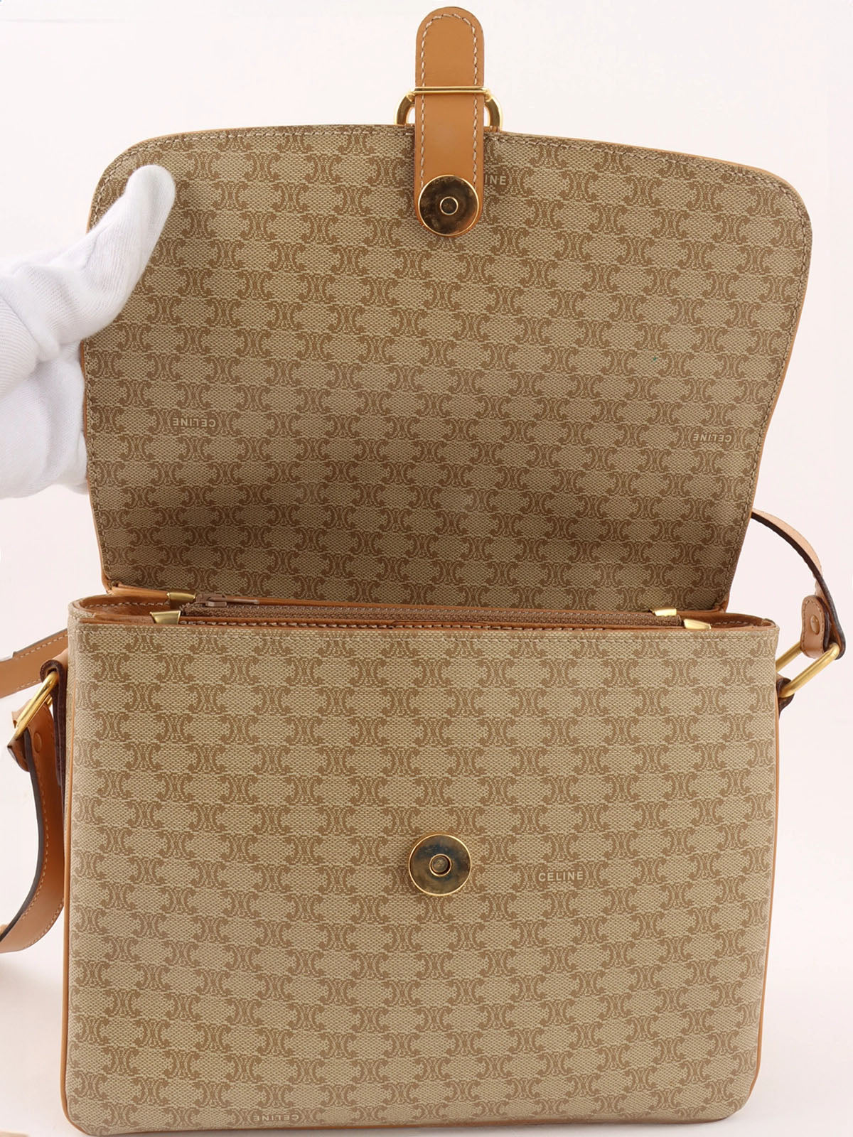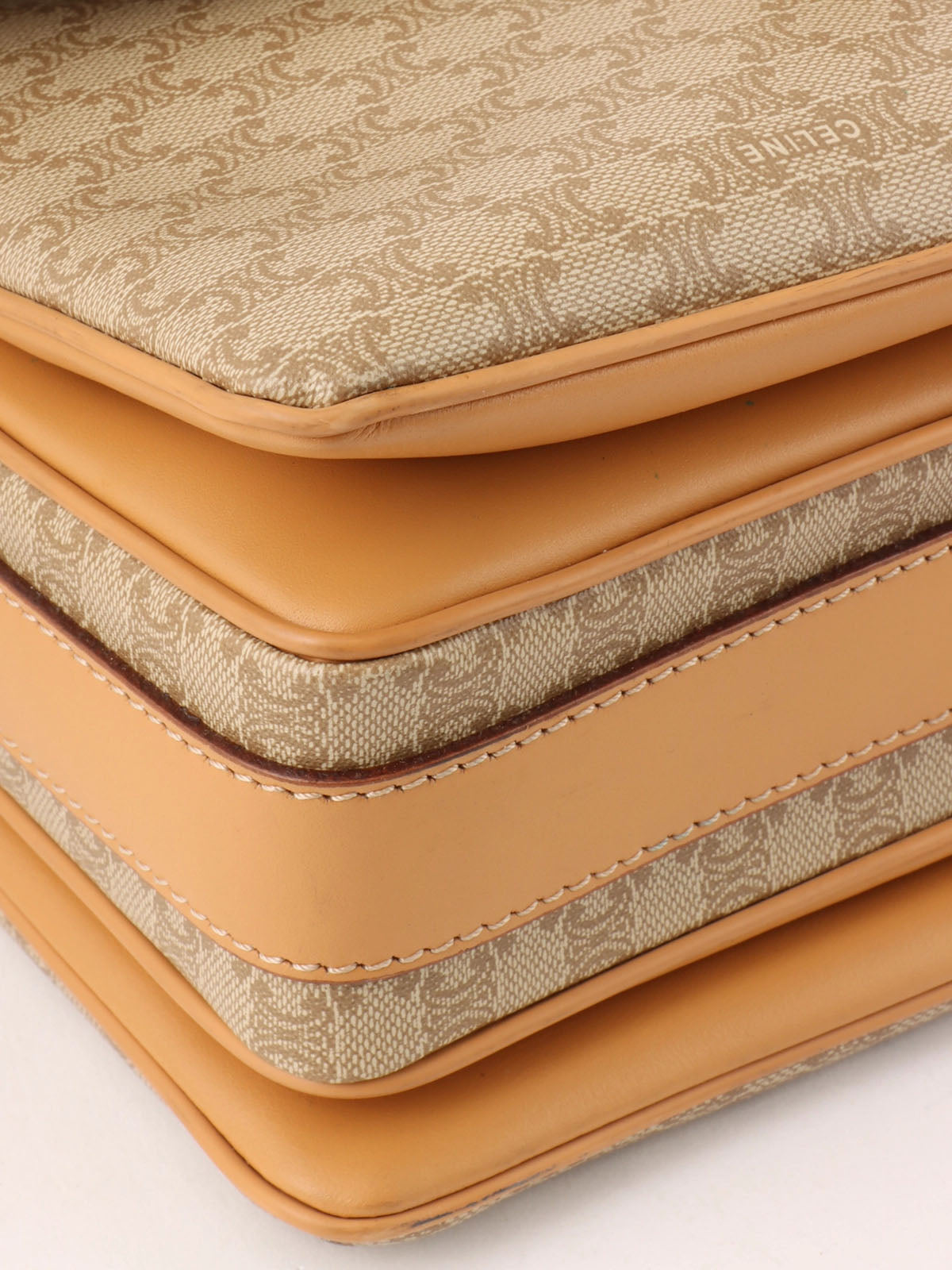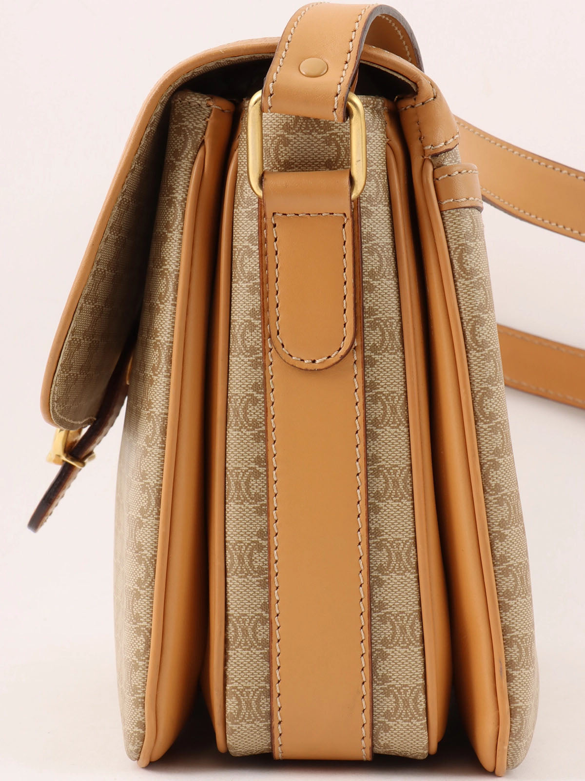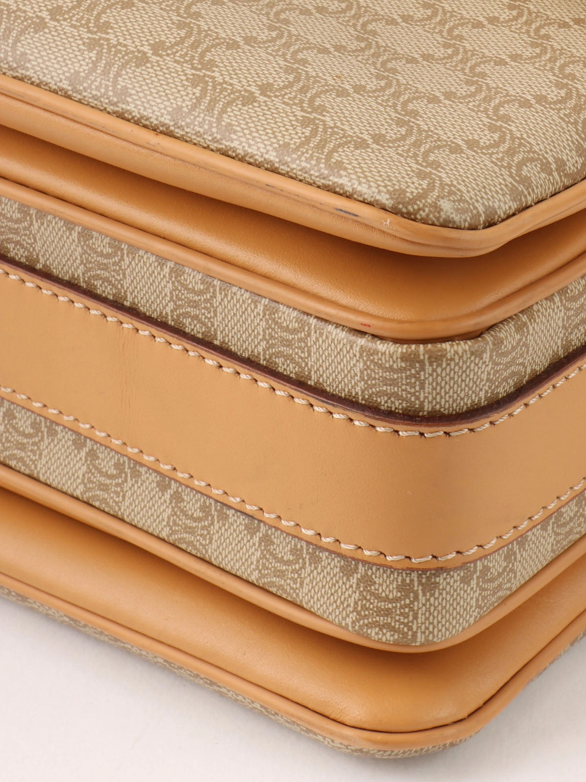 Macadam Pattern Logo Plate Shoulder Bag, Beige