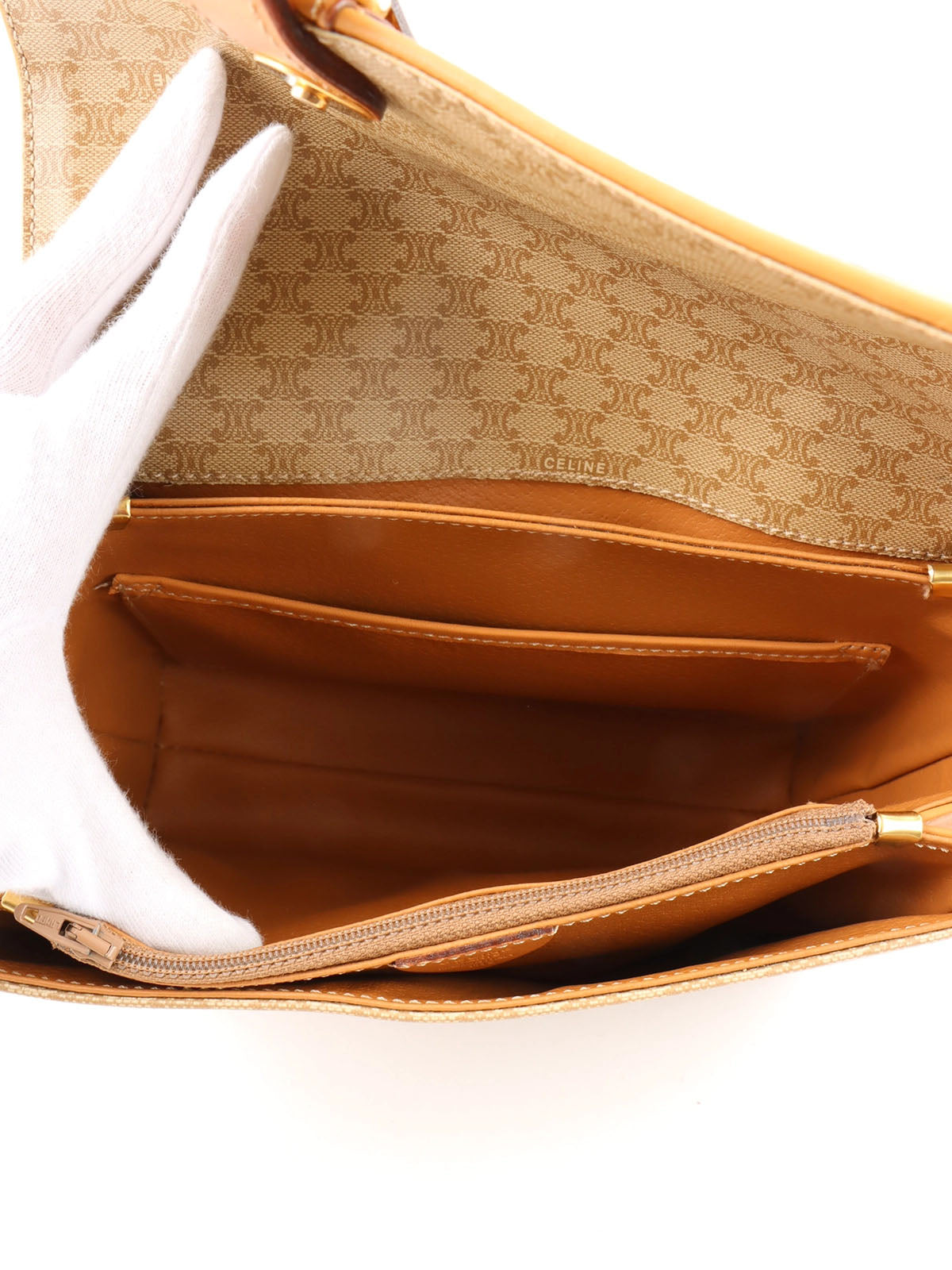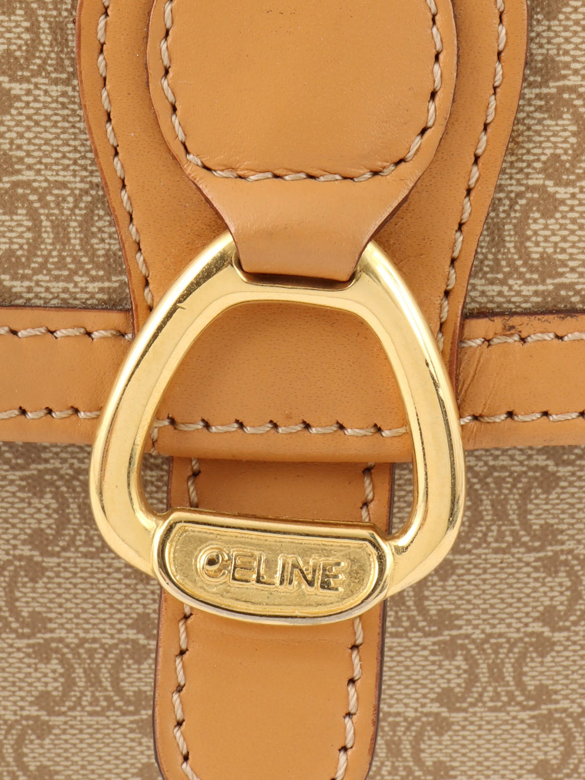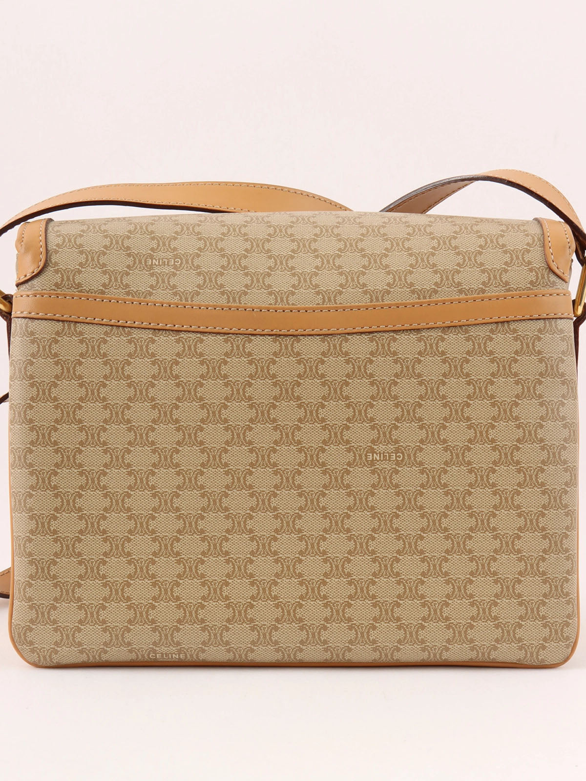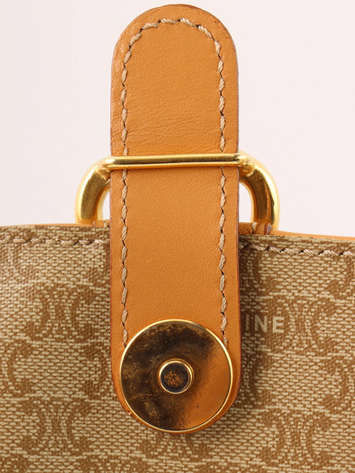 Macadam Pattern Logo Plate Shoulder Bag, Beige