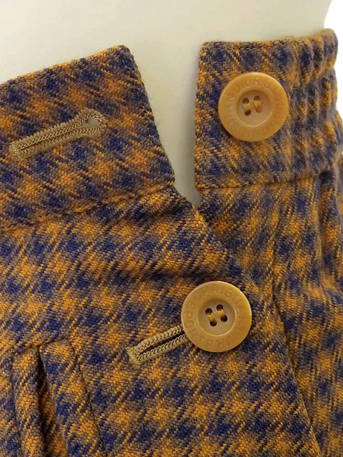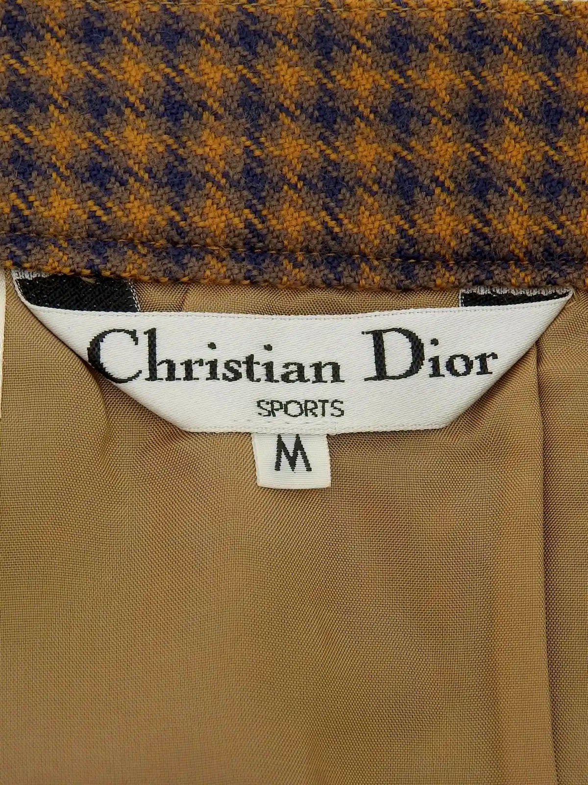 Block Check Pattern Box Pleated Skirt in Camel/Navy