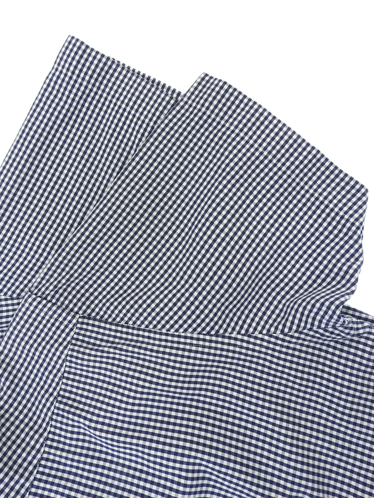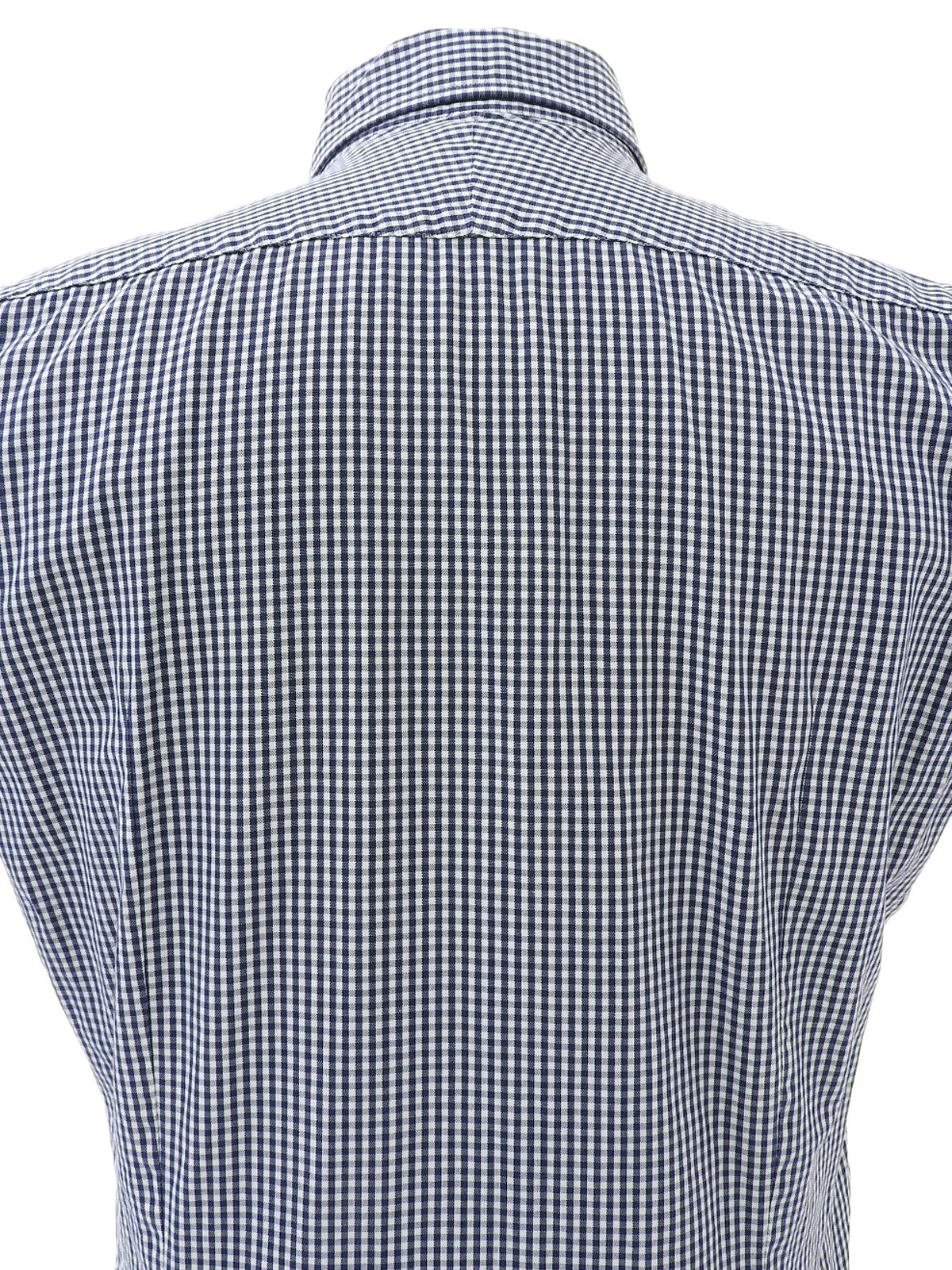 Gingham check pattern logo embroidered half sleeve shirt in blue/white