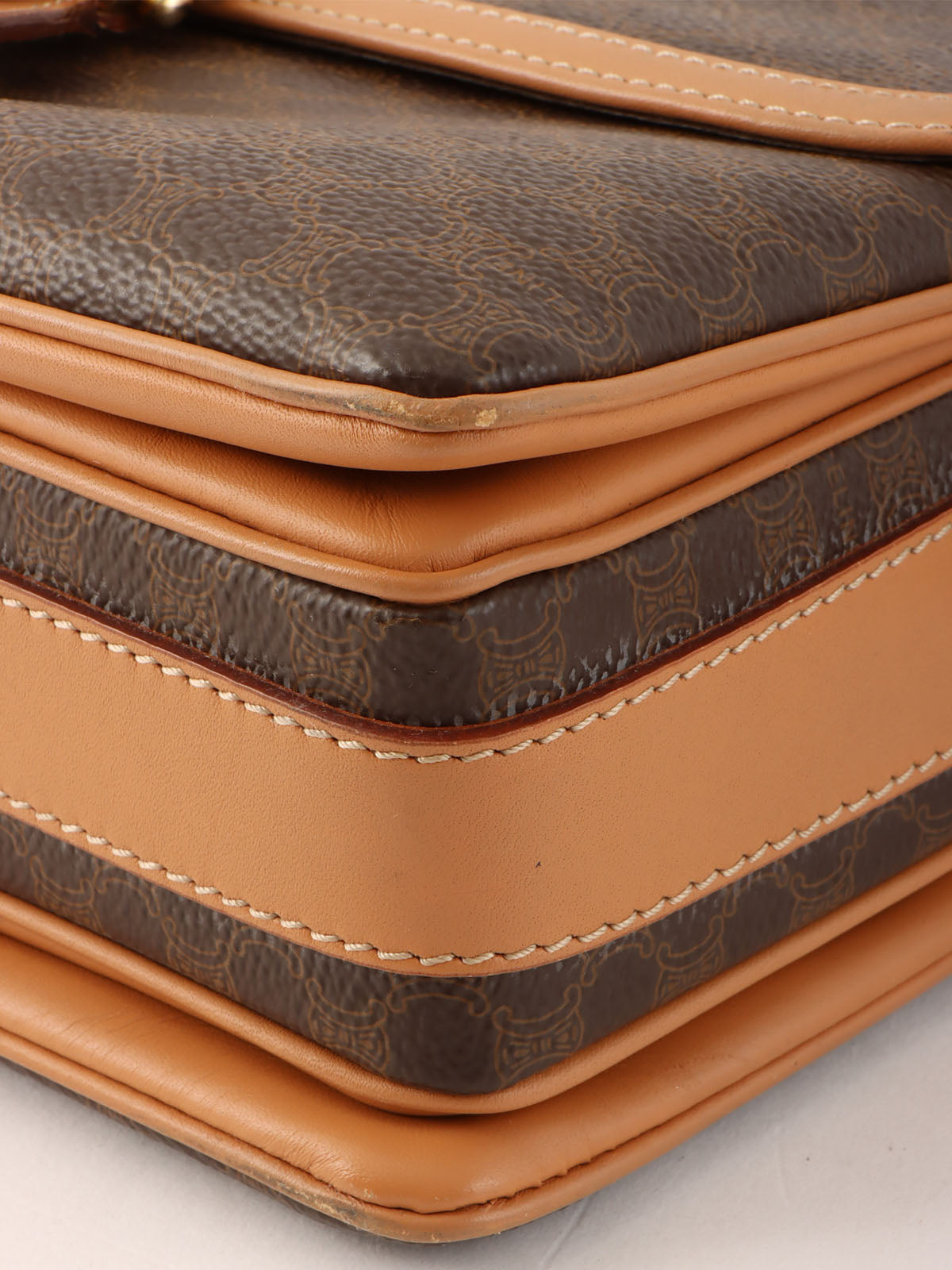 Macadam Pattern Logo Embossed Shoulder Bag Brown