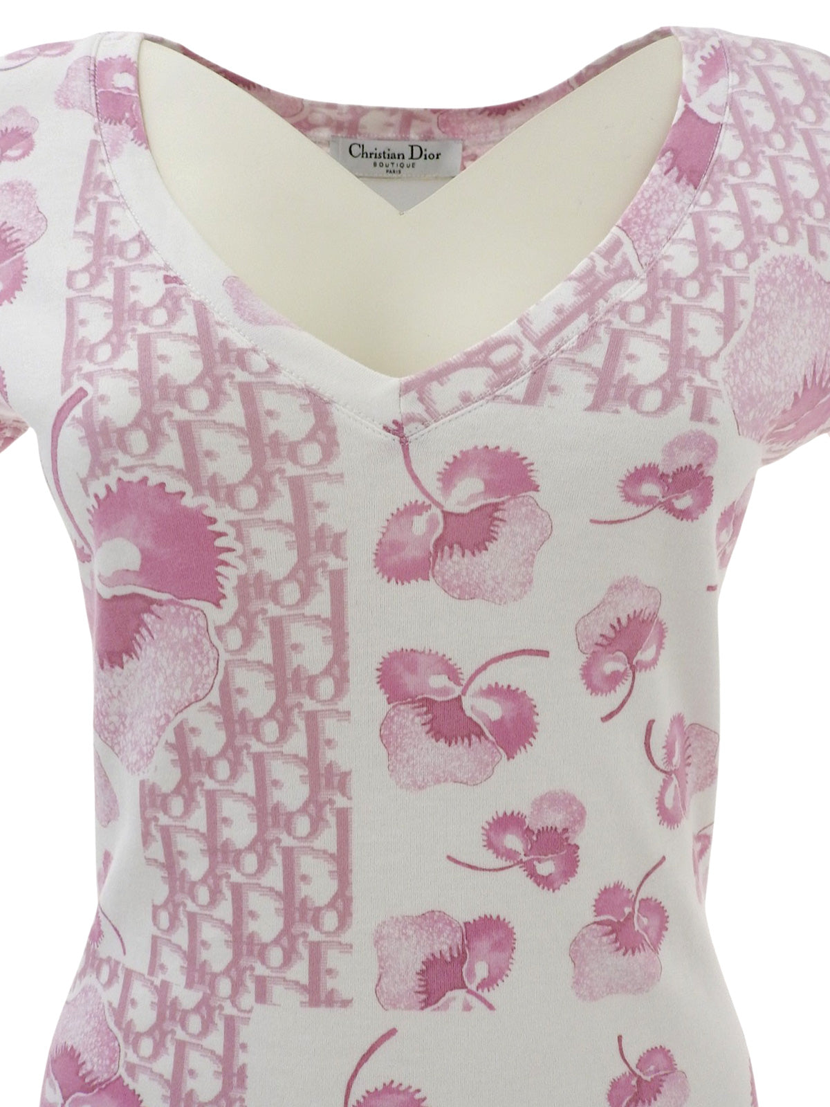 Design Pattern Short Sleeve Top in White/Pink