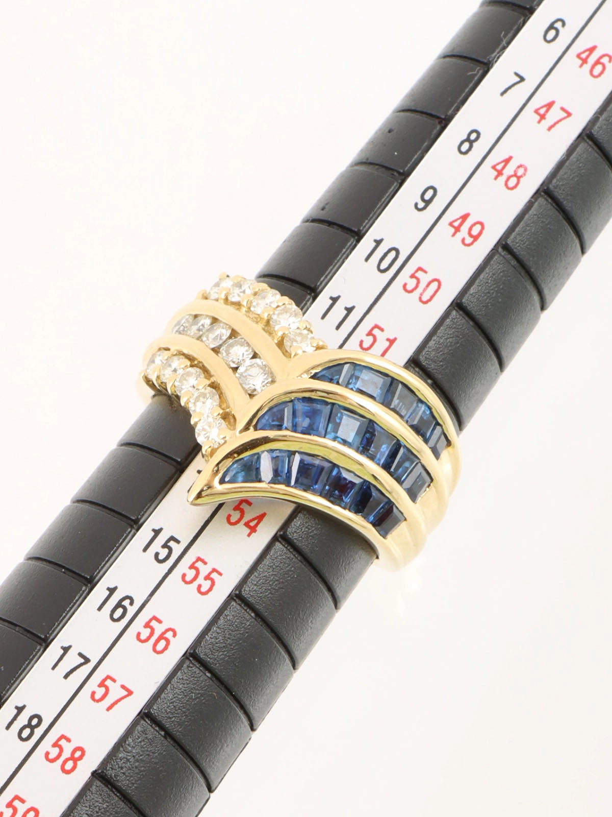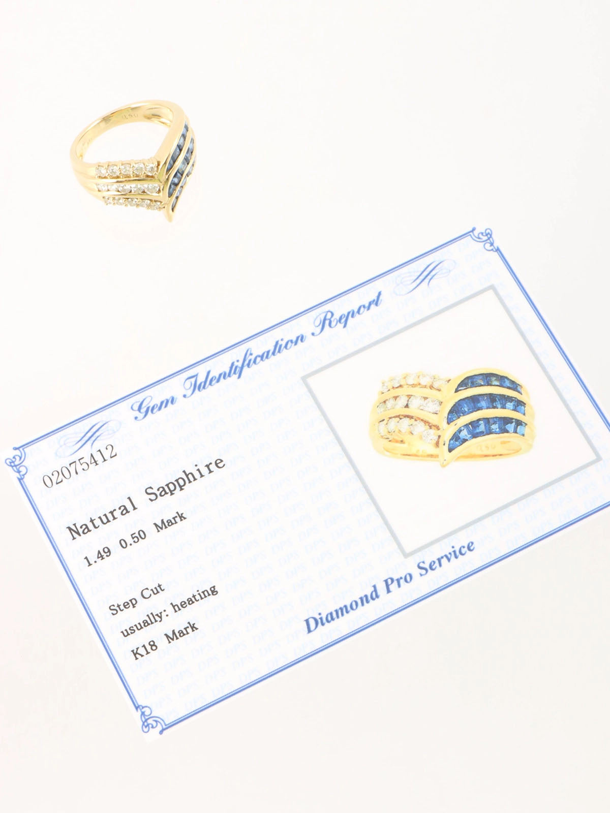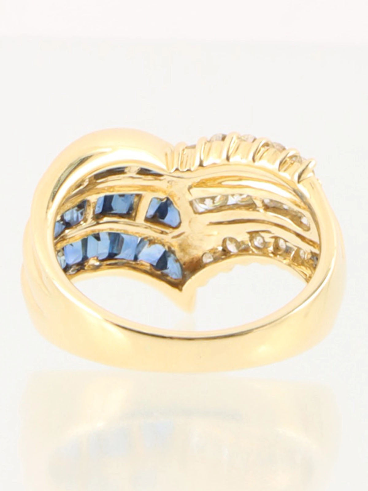 18K Gold/Blue Diamond and Sapphire Design Ring