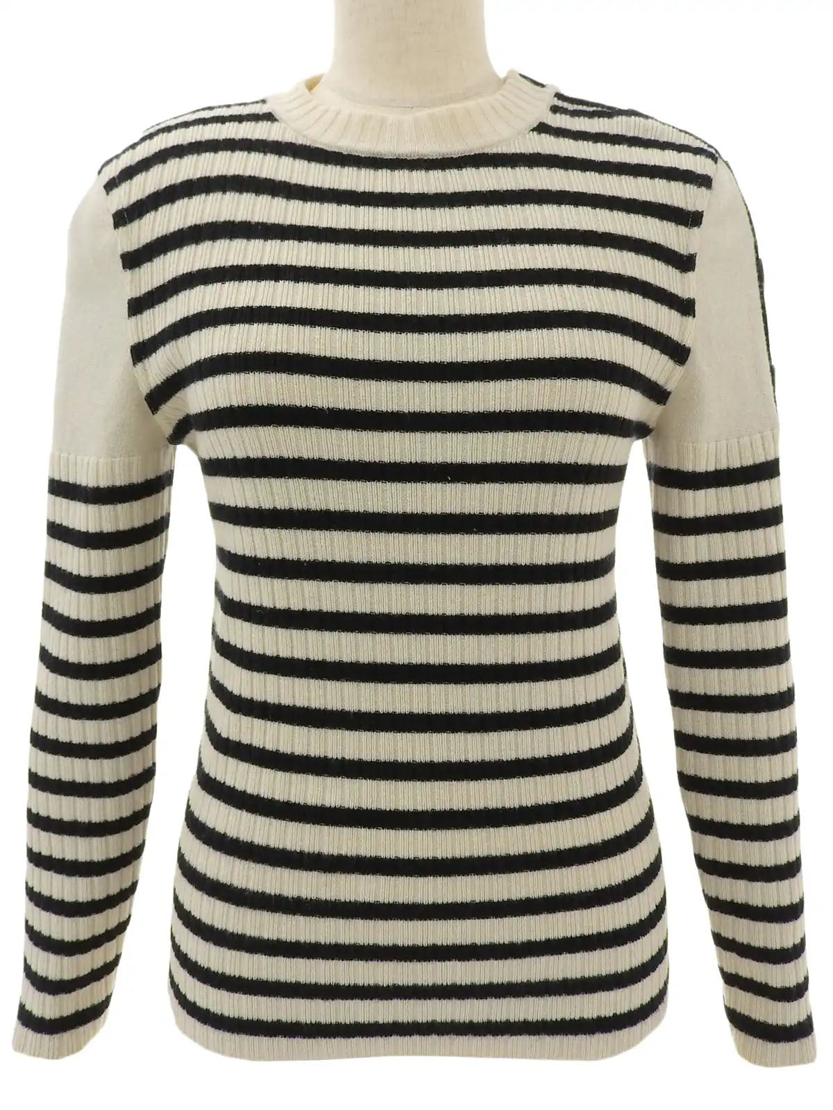 2006 Border Pattern CC Mark Button Knit Sweater, Ivory/Black
