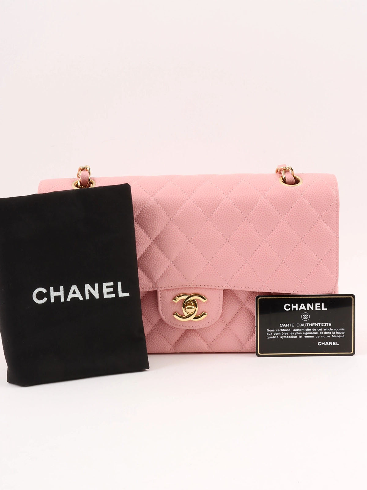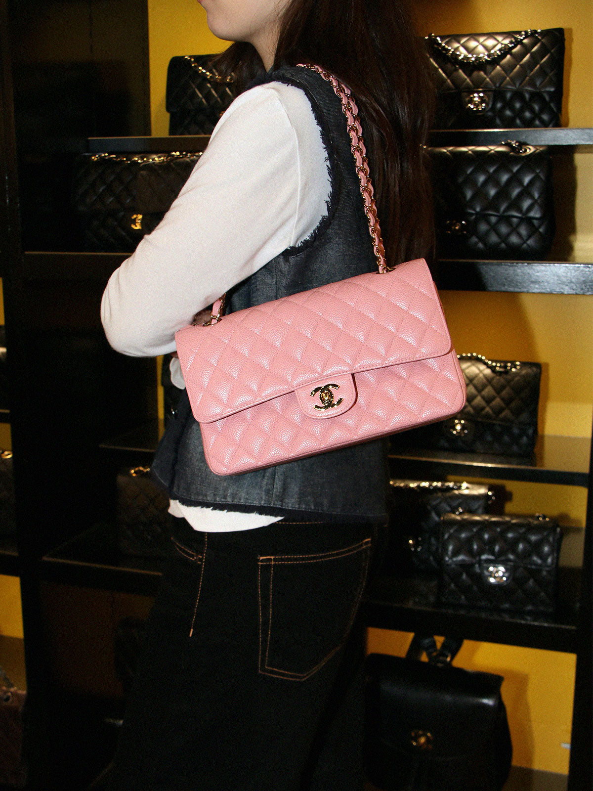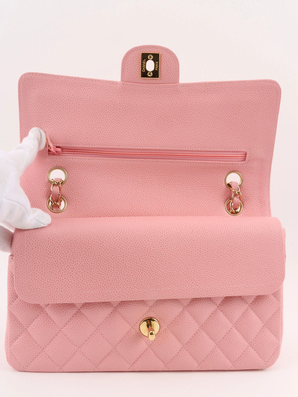 2004 Caviar Skin Classic Flap Chain Bag 25cm Pink