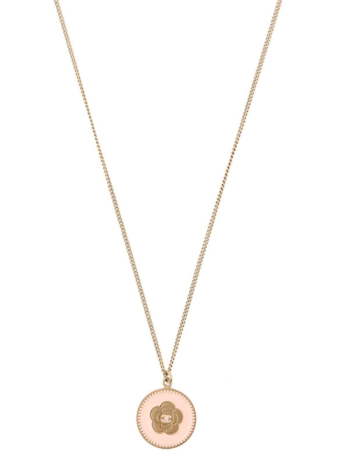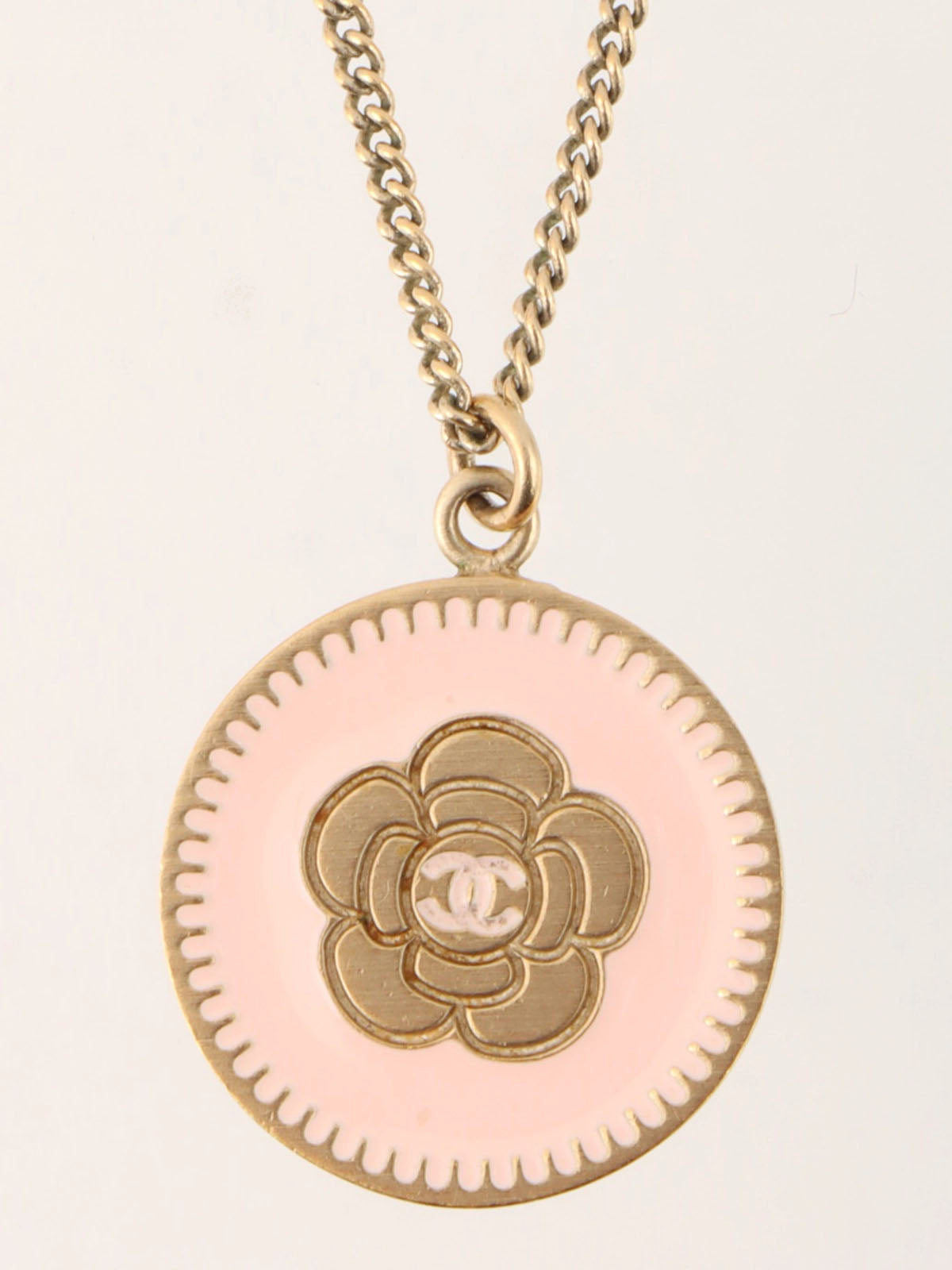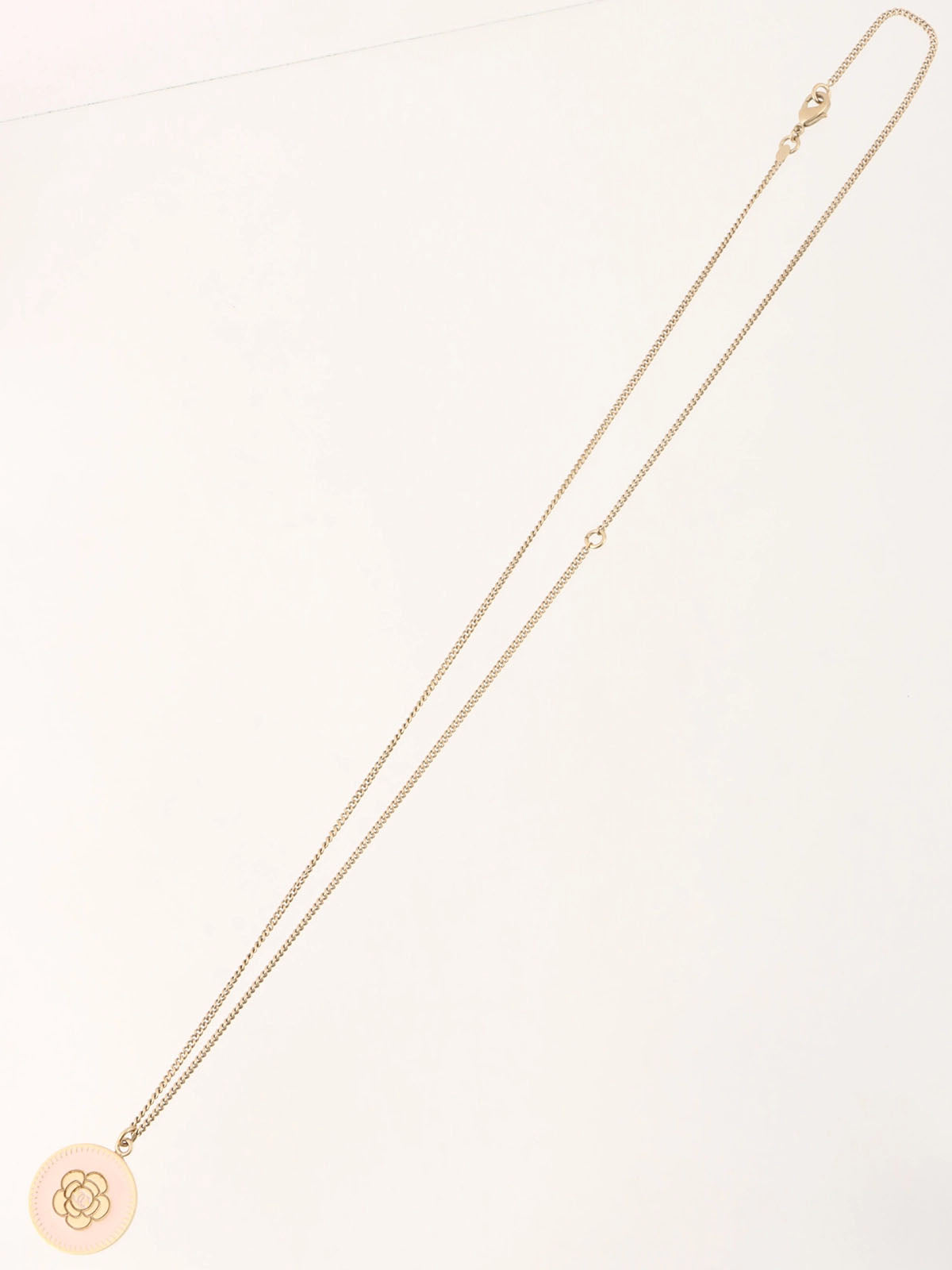 2006 Round Camellia CC Mark Necklace Gold/Pink