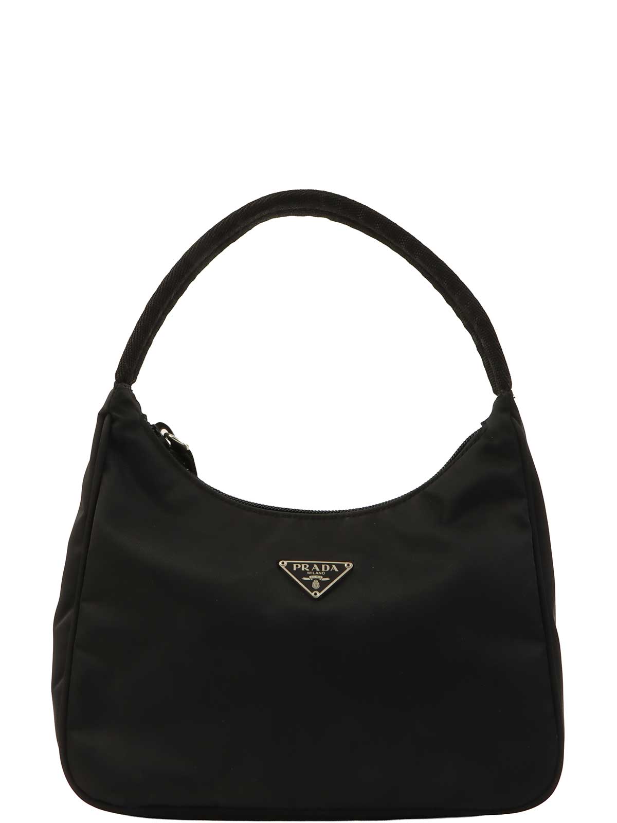 Nylon logo plate handbag in black