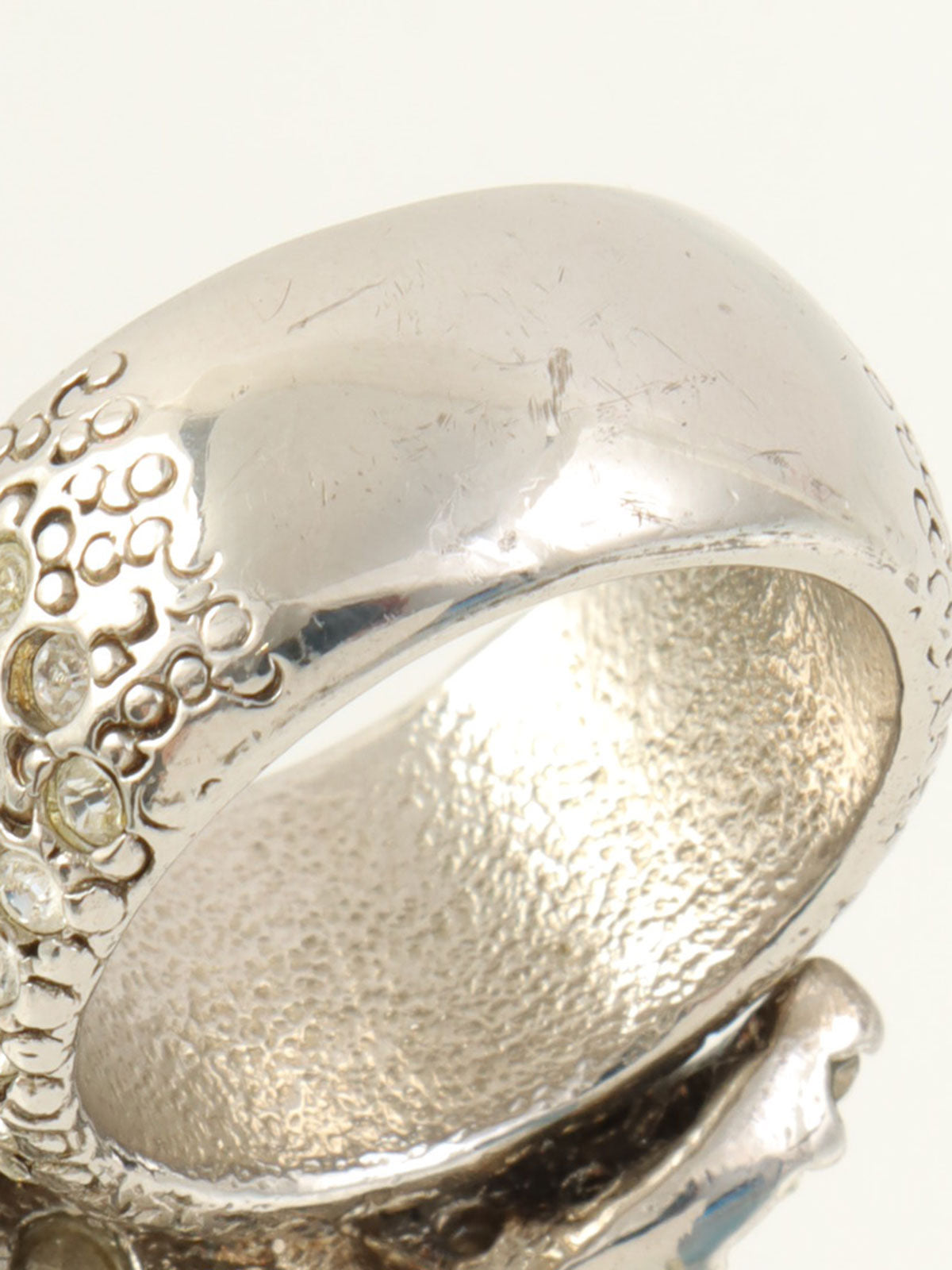2010 Rhinestone Camellia Motif CC Mark Ring Silver