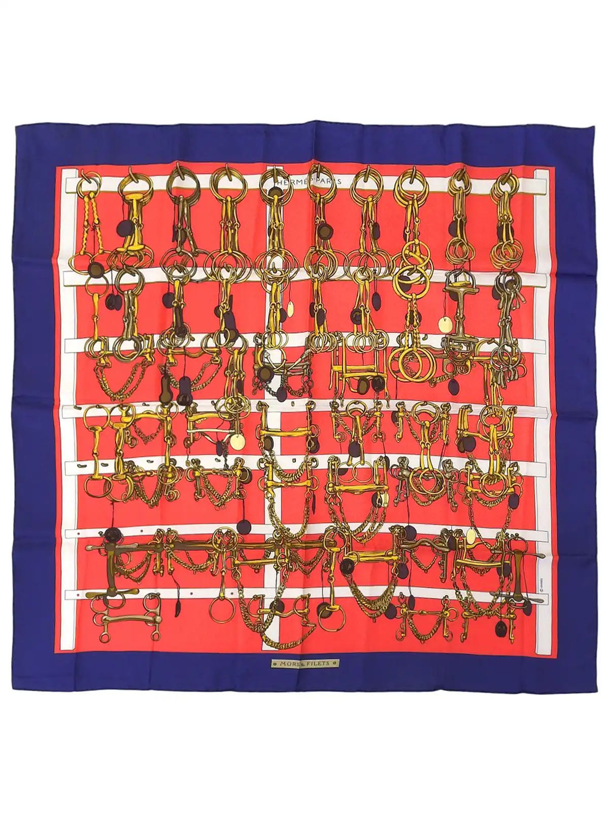Carré 90 Mors & Filets Pattern Scarf in Red/Navy/Multi