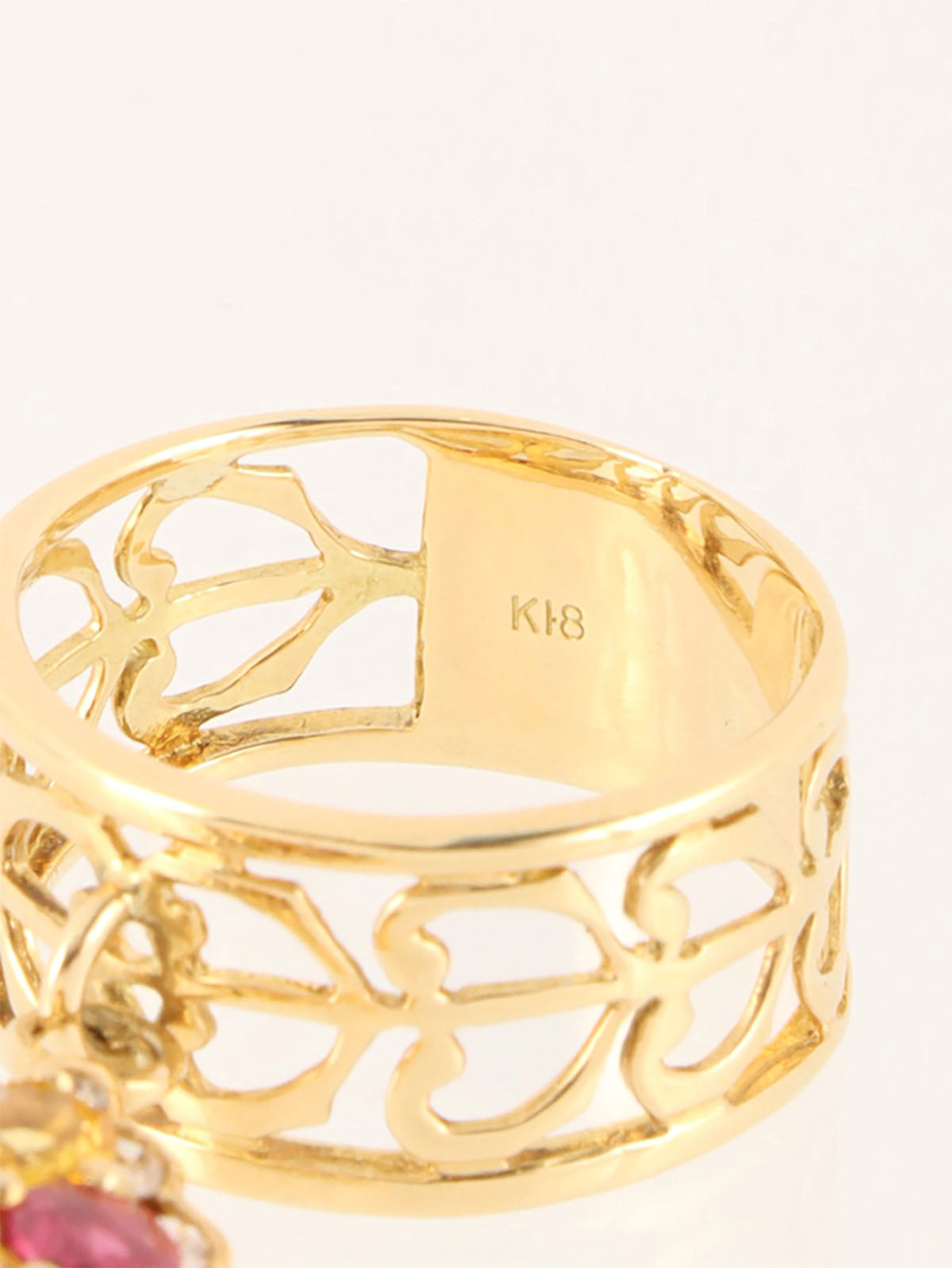 18K Sapphire and Diamond Motif Swing Ring Gold/Multi