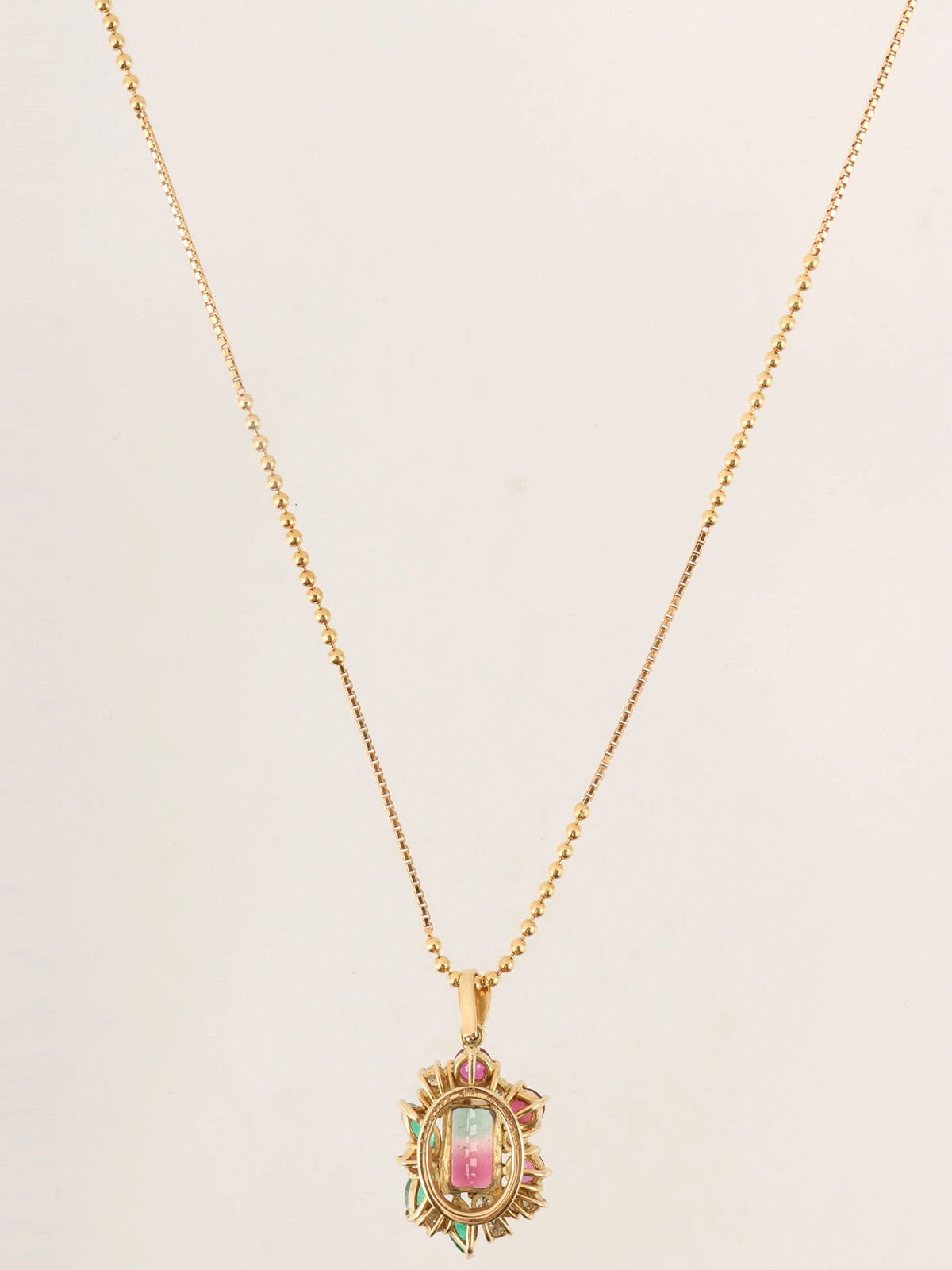 18K Diamond Watermelon Tourmaline Necklace in Gold/Green/Red