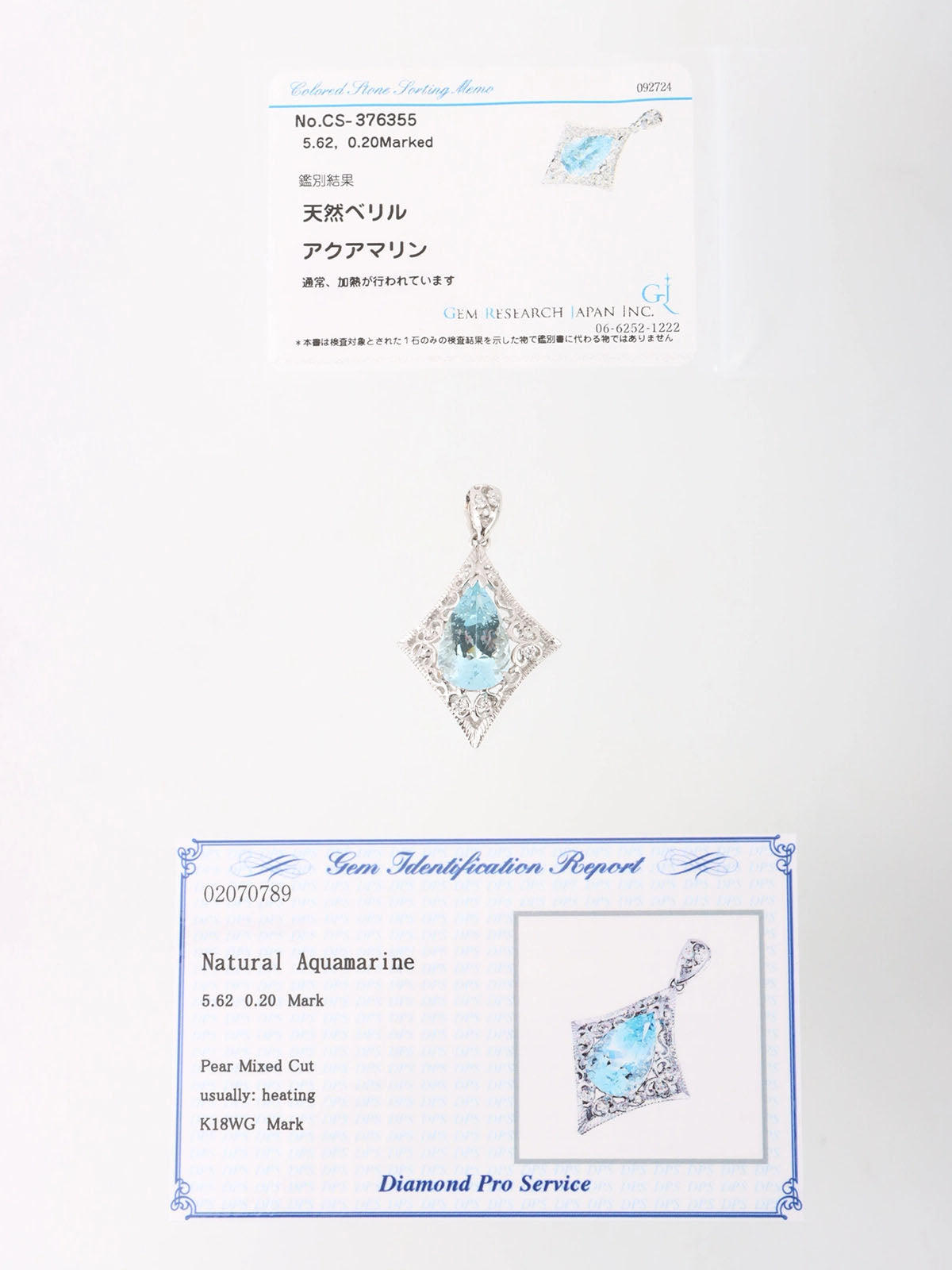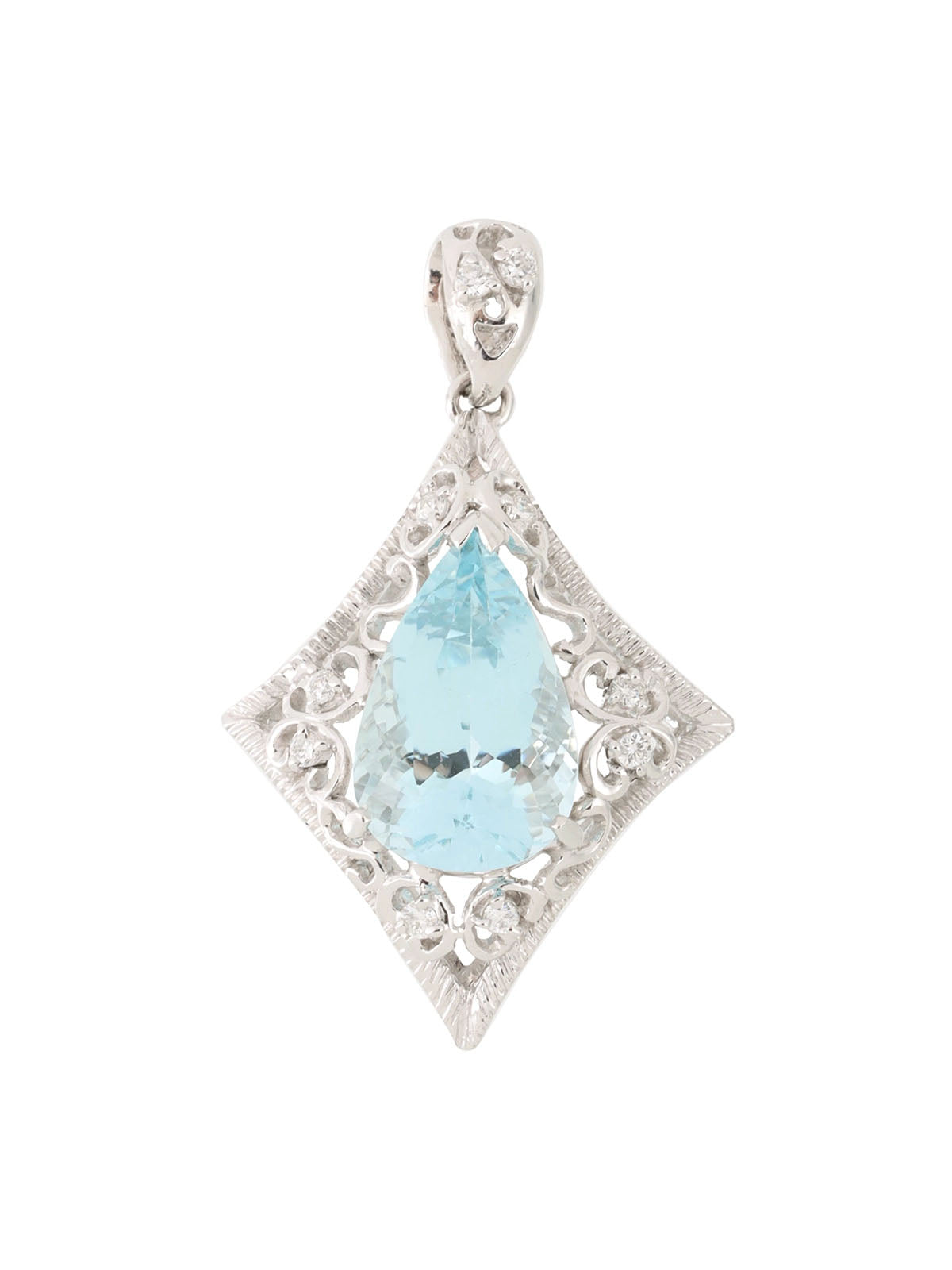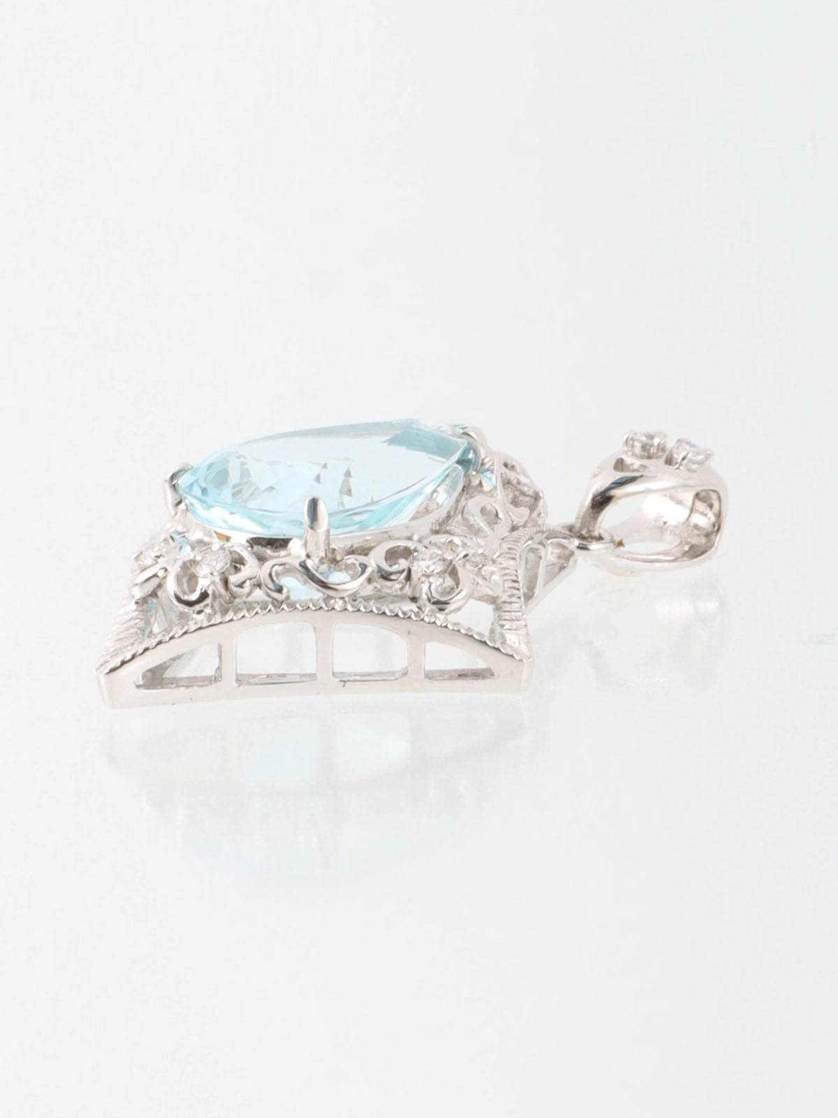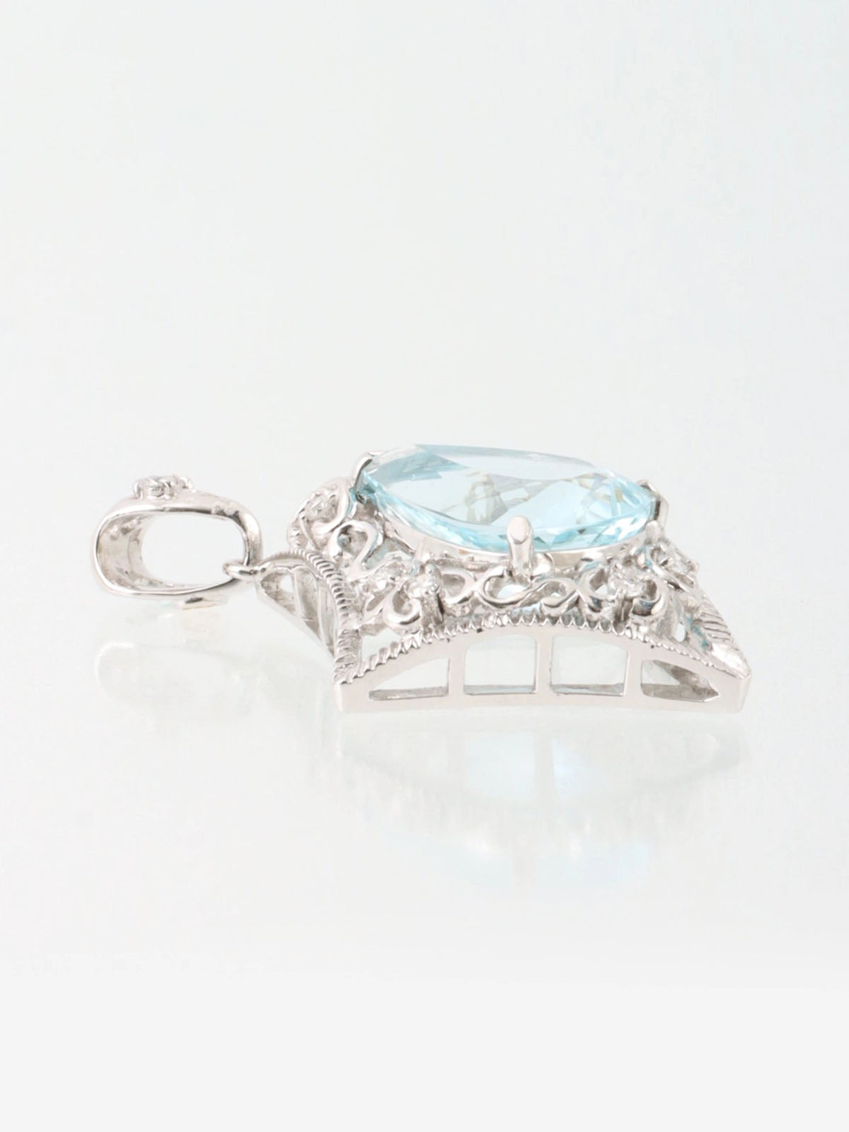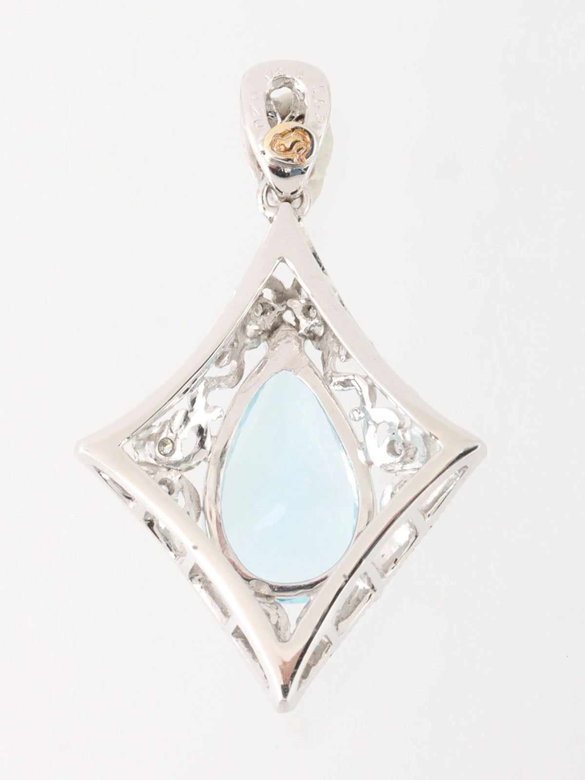18K Aquamarine Diamond Cutout Pendant Top in Silver/Light Blue