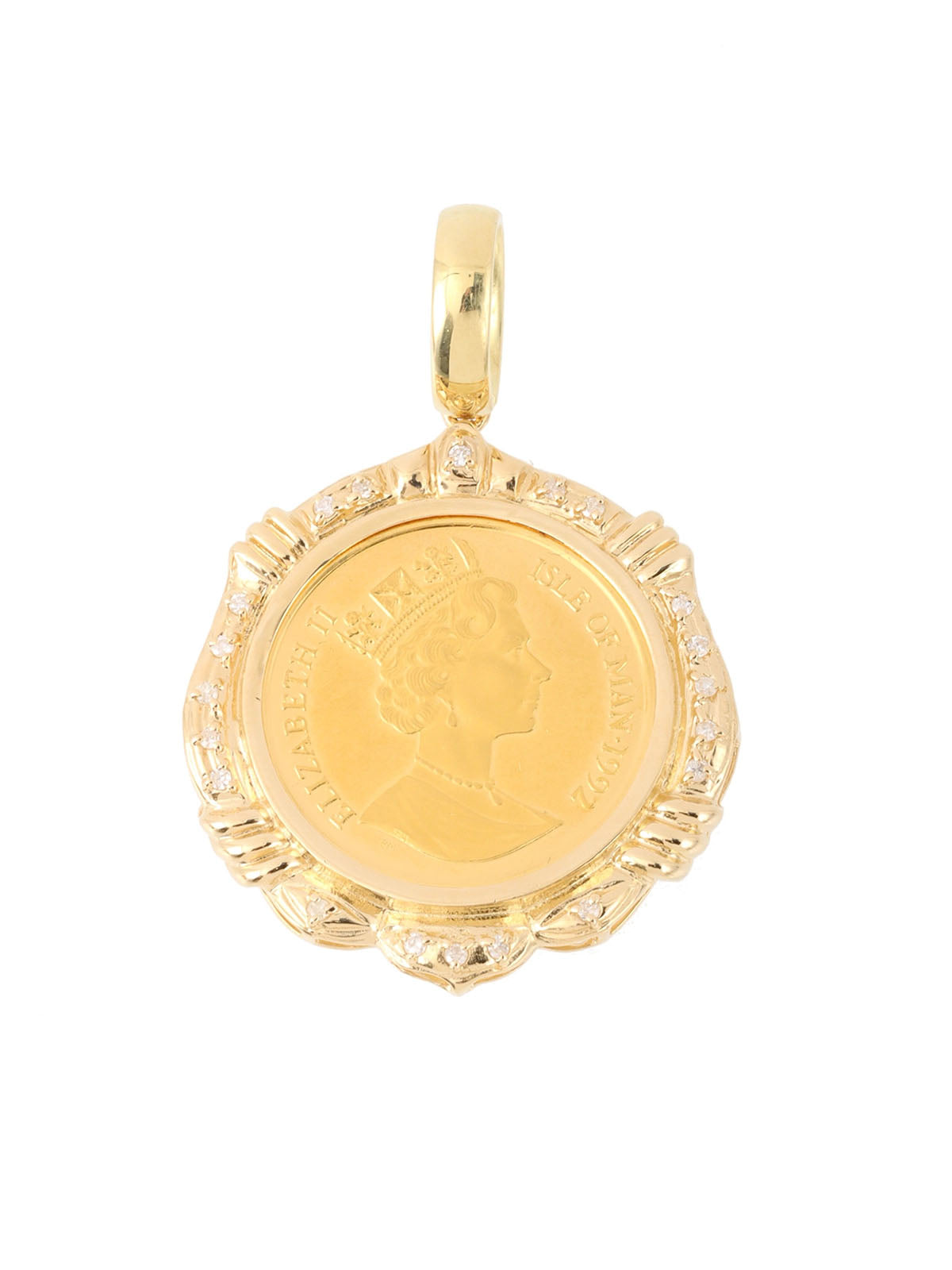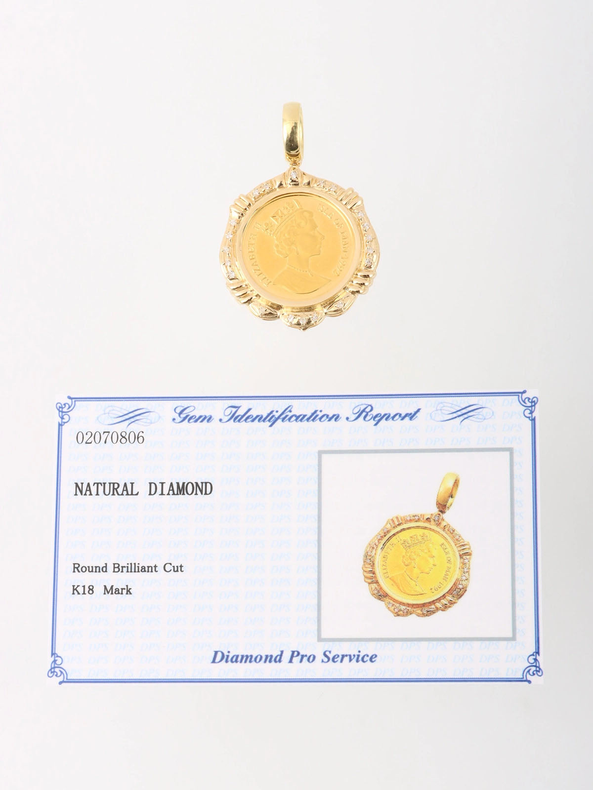1992 18K Diamond Queen Elizabeth Pendant Top Gold