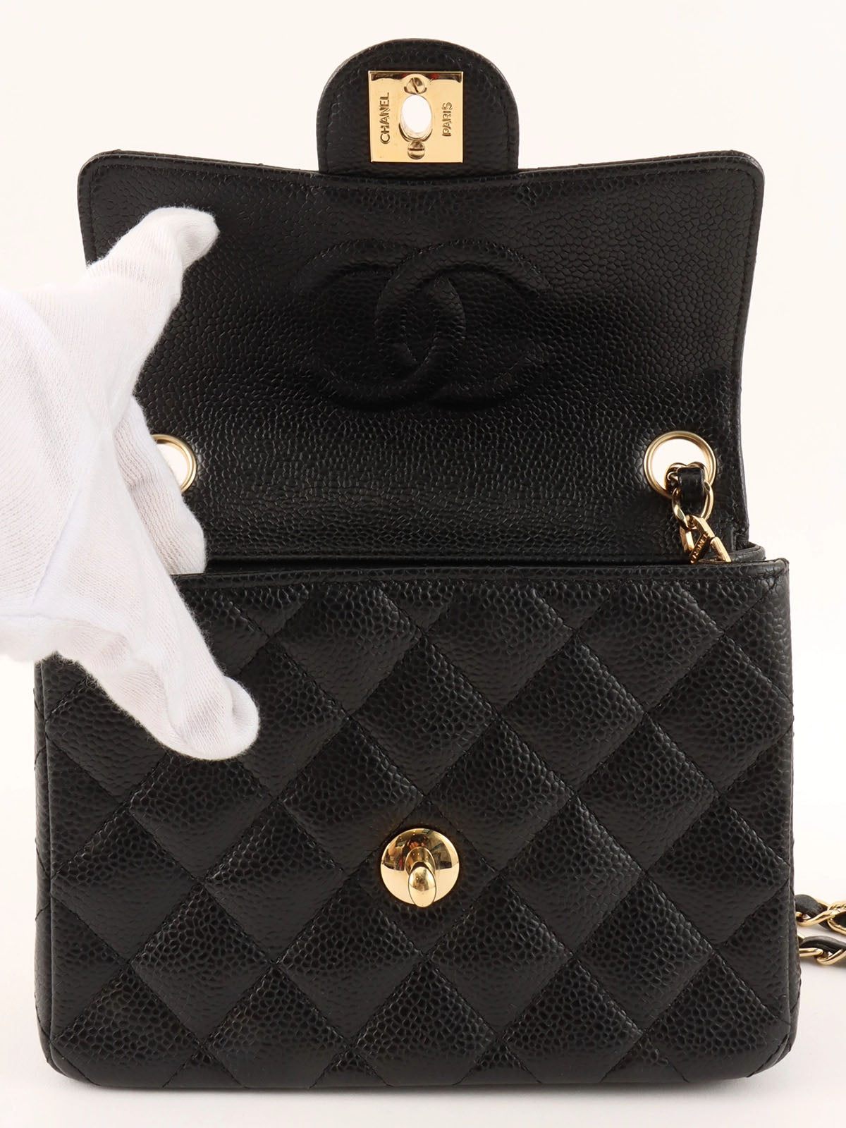 2005 Caviar Skin Classic Flap Chain Bag Mini Black